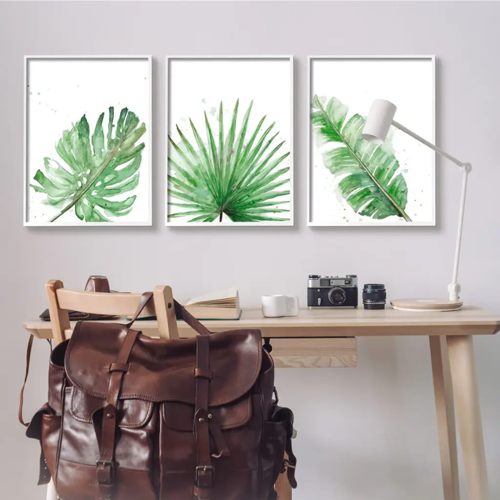 Green Leaves Modern Green Tropical Palm Fans ,3pc, Each 24 X 30