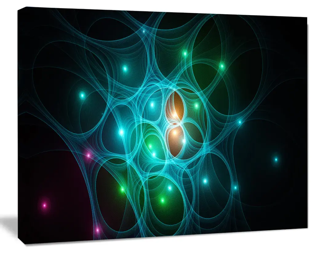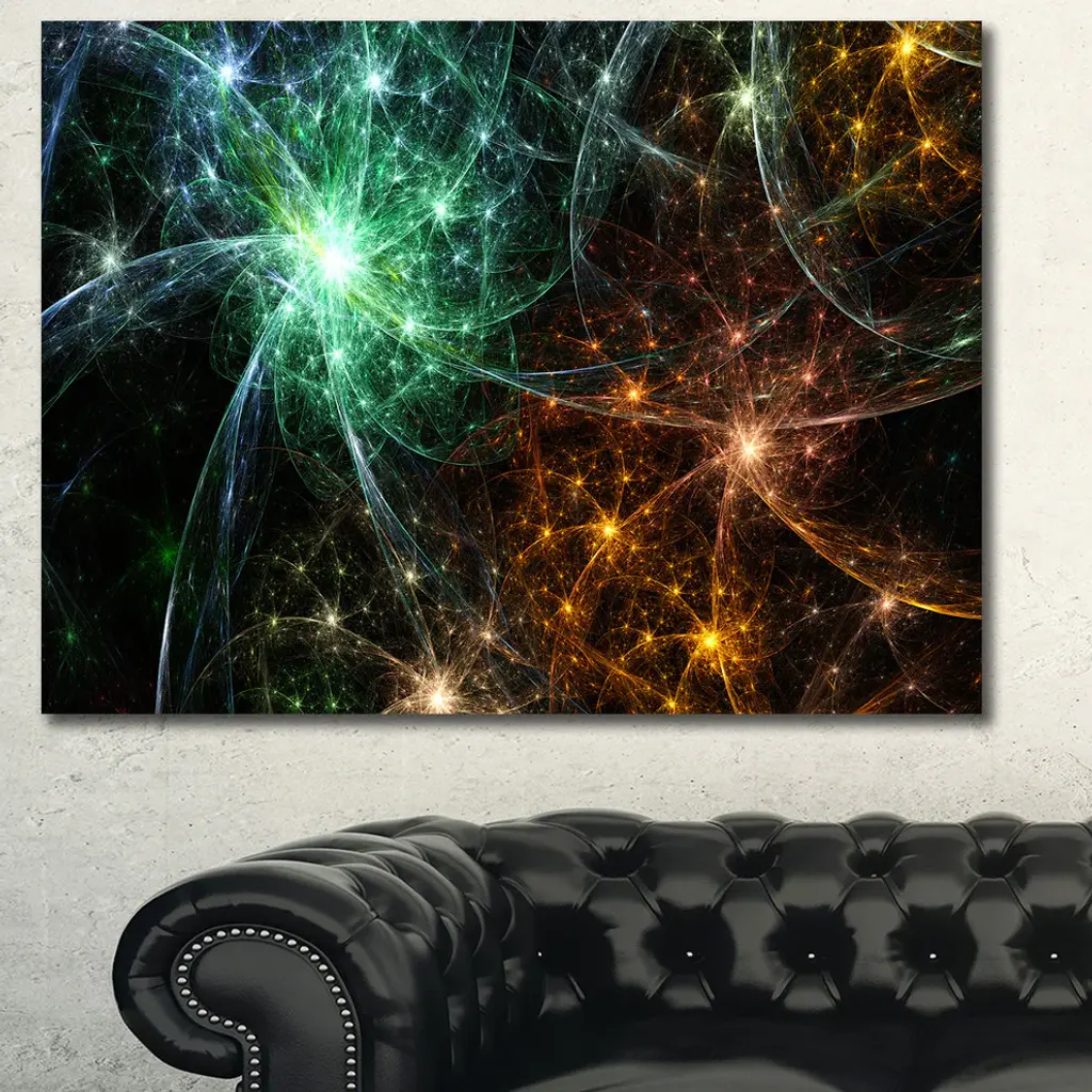 Green Orange Colorful Fireworks, Oversized Abstract Canvas Art Print, 60x40