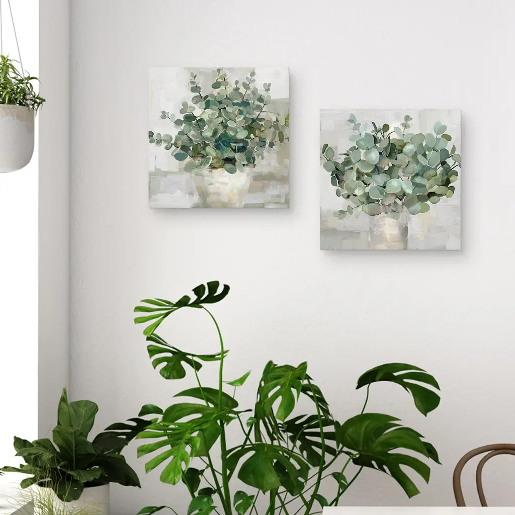 Green Palm Frond Plants Brown Jars Still Life,12 X 12