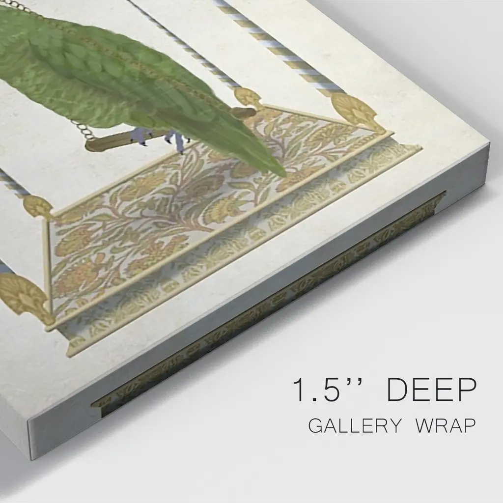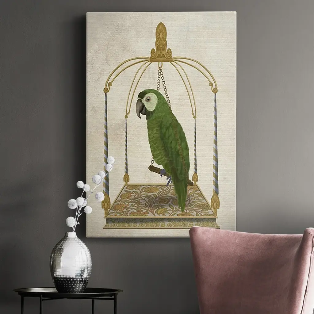 Green Parrot On Swing Premium Gallery Wrapped Canvas - Ready To Hang - 32x48
