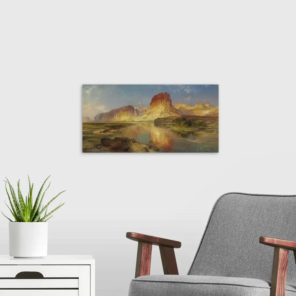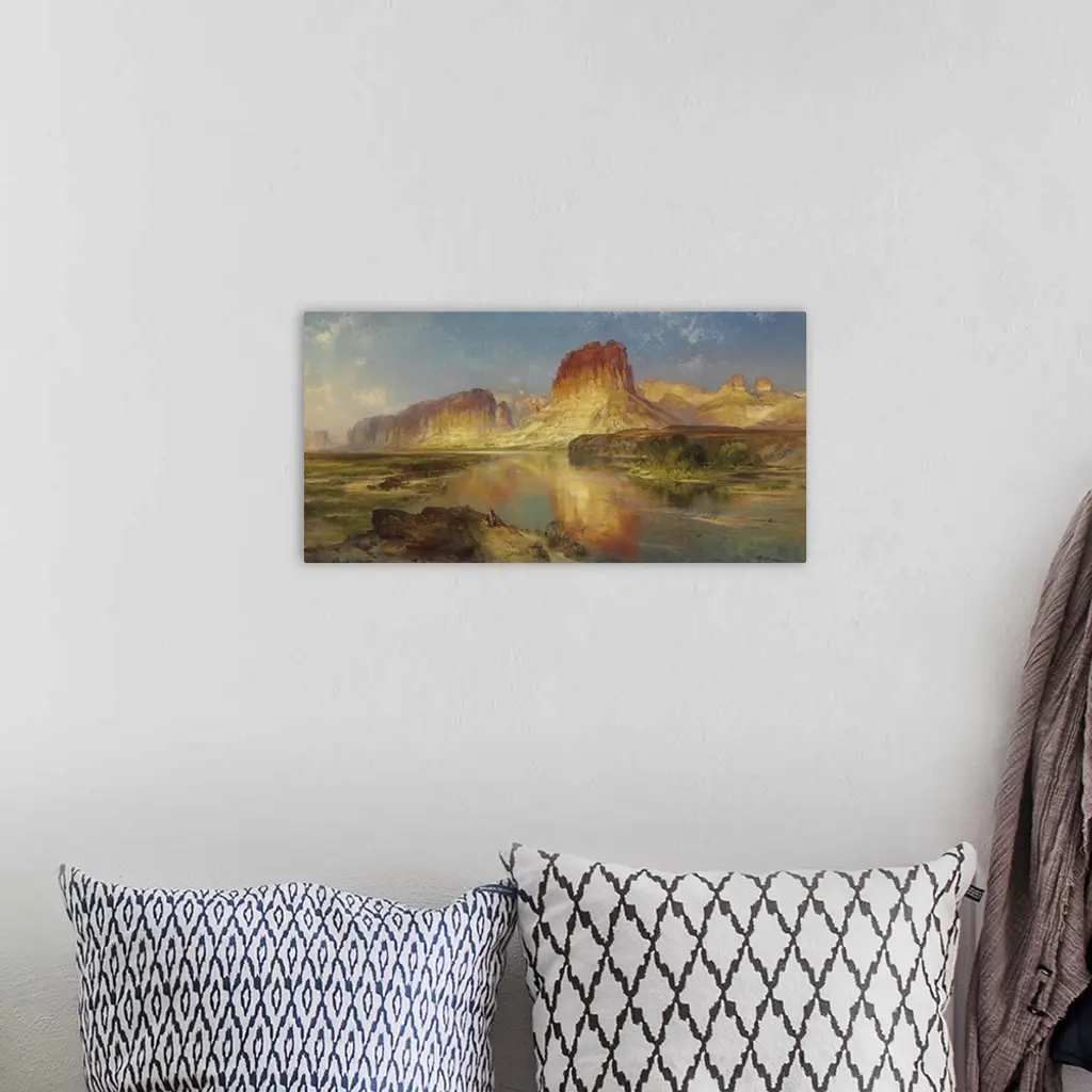 CH387958 Green River of Wyoming, 1878 (oil on canvas) by Moran, Thomas (1837-1926); 63.5x121.9 cm; Private Collection; (add.info.: sold for 7.74 million in 2008, a record price for a 19th century American painting;); Photo .... Christie's Images; American, out of copyright