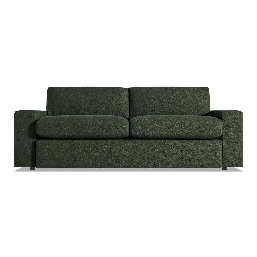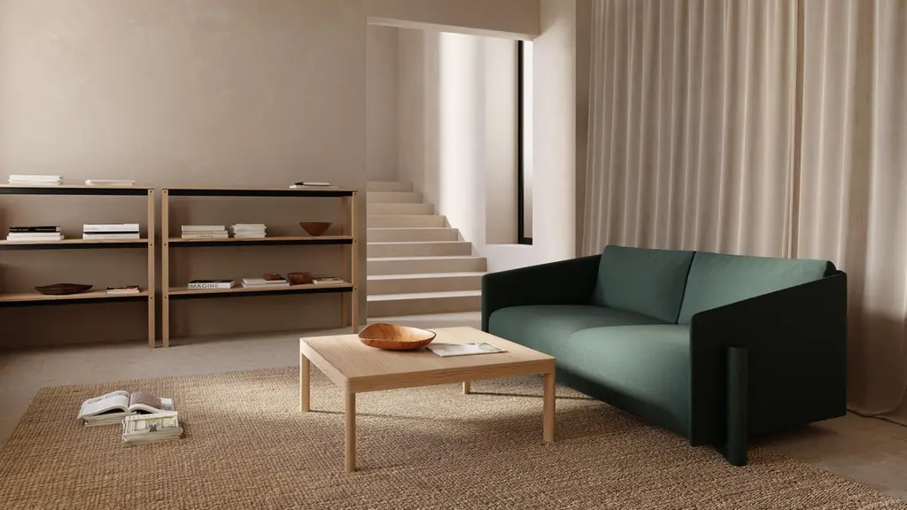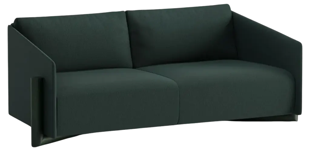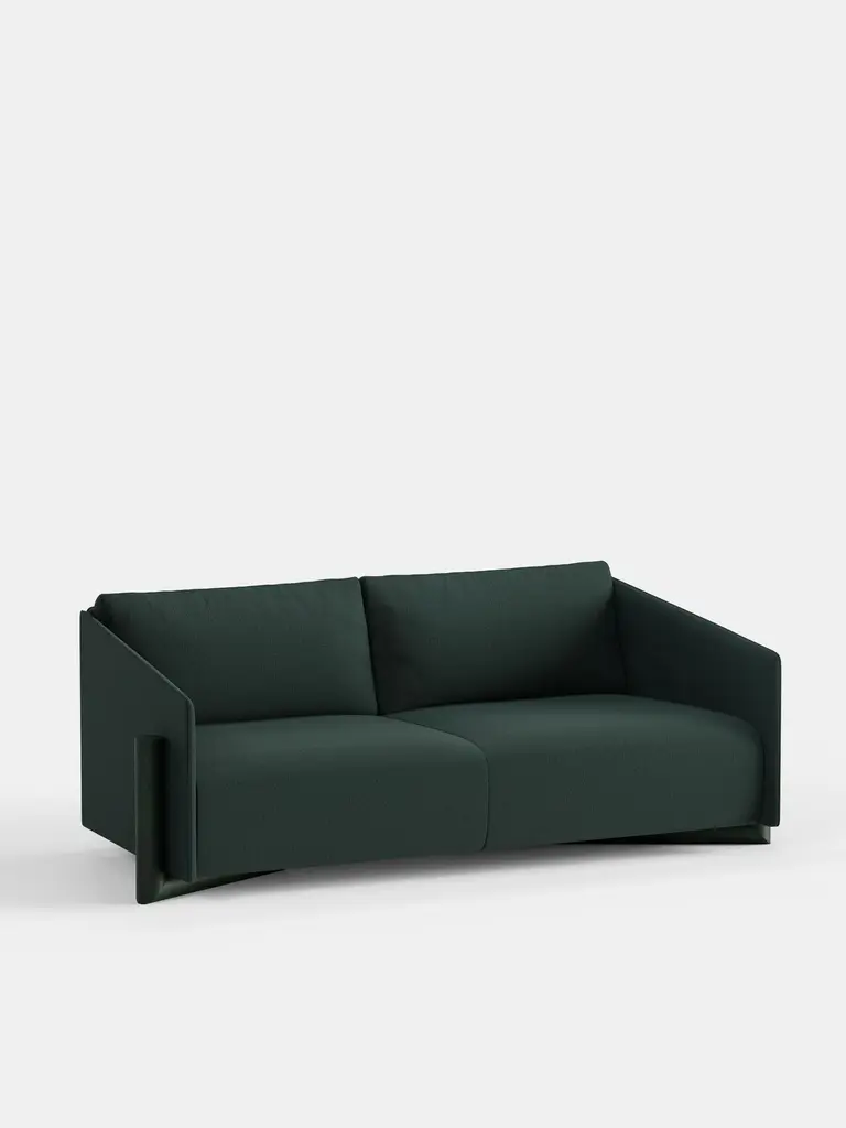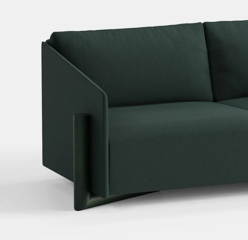 Green Timber 3 Seater Sofa by Kann DesignDimensions: D 104.5 x W 200 x H 75 cm.Materials: Solid wood, elastic belts, HR foam, fabric upholstery Kvadrat Vidar 1062 (94% wool, 6% nylon).Available in other fabrics.The strong presence of textile in the Timber collection gives it the appearance of a comfortable cloud that seems to levitate above the ground. The wooden structure disappearsunder the furniture to appear only at the back and on each side of the armrests, playing on the resemblance to the roots of a tree. The character and dynamism of the furniture is reinforced by the choice of a two-color between the textile and the wood.Founded in 2010, Kann Design is a furniture-making brand that brings together the know-how of the Kanaan workshop and the talents of independent designers. Kann’s adventure is above all a family story: what distinguishes it from the rest is the skilled work of the craftsmen of Kanaan, a collective founded in 1958 in Beit Chabab, Lebanon, by the father of Houssam, the founder of Kann Design, himself a cabinetmaker.Since its creation, the studio has shown and gained great skills in cabinetmaking, painting, tapestry, and welding, and since 2017, thanks to Houssam’s brother, Samer Kanaan, the workshops have been modernized and expanded to accommodate Kann’s ever-more ambitious projects, particularly customized orders for specific projects carried out in collaboration with architects.