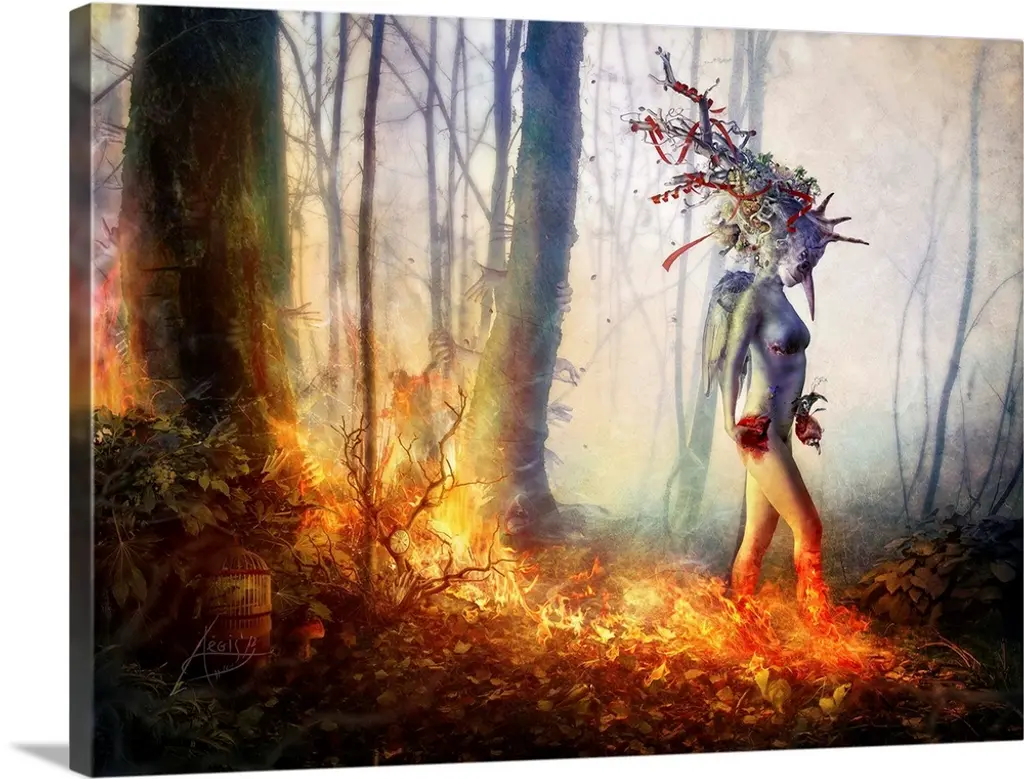 "Green Time Travel" Abstract Digital Art Canvas Print