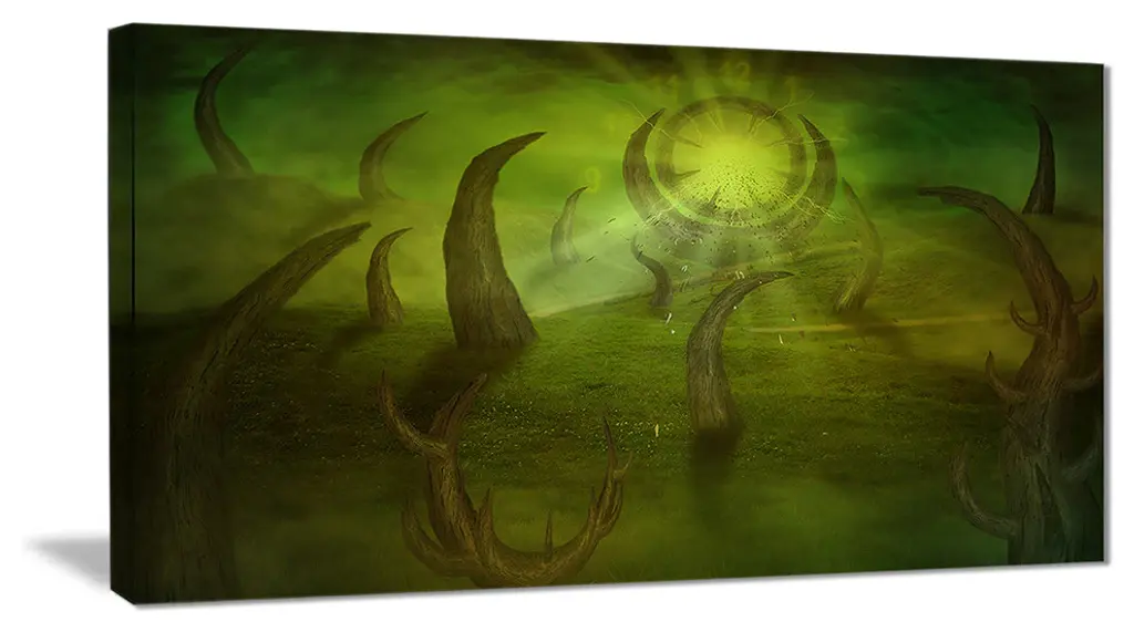The Green Time Travel canvas art print is sure to make an impression on anyone who sees it. This artwork is gallery wrapped around a 1-inch solid wood frame and arrives carefully packaged and entirely ready to hang on the wall. Design Art only uses the highest resolution and pigments to ensure a crisp colorful print that is never faded or pixelated. This artwork is sure to be a conversation starter in any home or office.