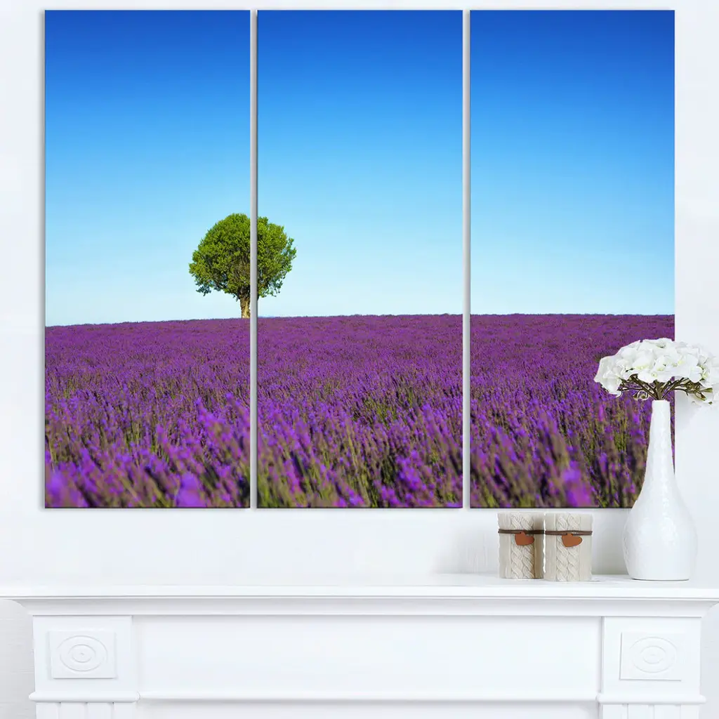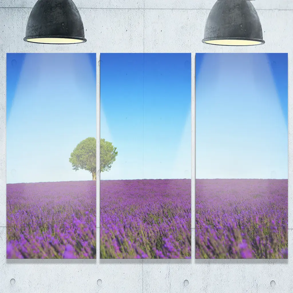 "Green Tree Among Lavender Flowers" Metal Wall Art, 3 Panels, 36"x28"