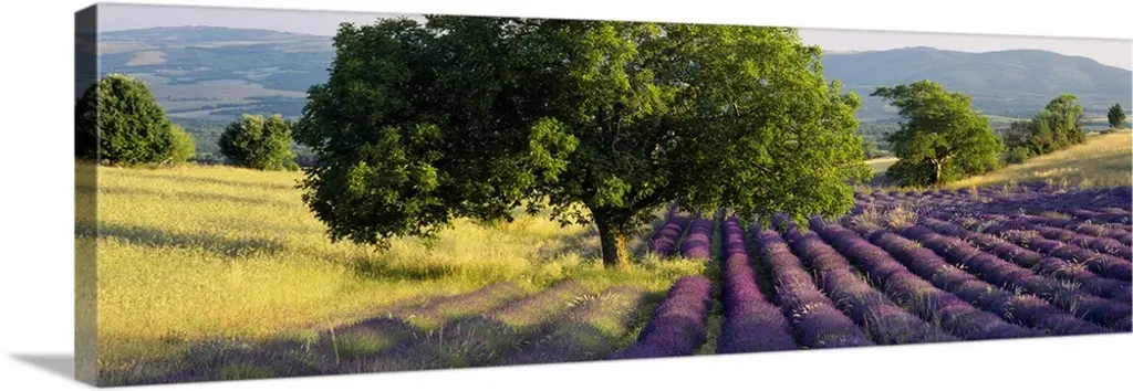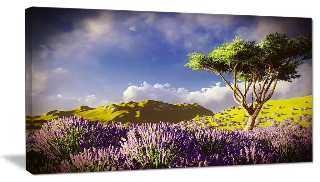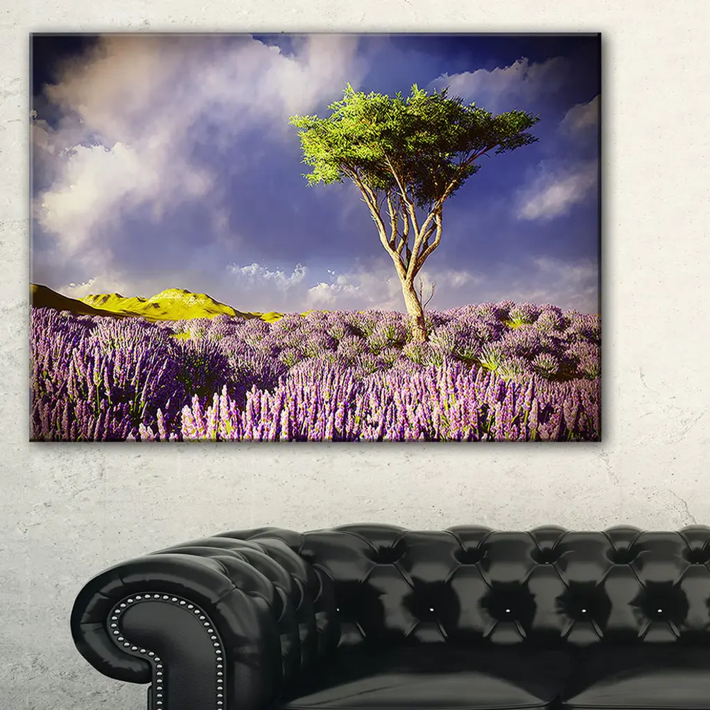 The Green Tree in Lavender Field canvas art print is sure to make an impression on anyone who sees it. This artwork is gallery wrapped around a 1-inch solid wood frame and arrives carefully packaged and entirely ready to hang on the wall. Design Art only uses the highest resolution and pigments to ensure a crisp colorful print that is never faded or pixelated. This artwork is sure to be a conversation starter in any home or office.