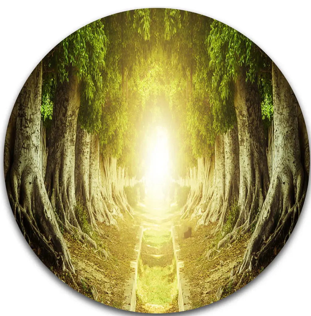 Bring contemporary abstraction to your home with this large 36W x 28H Metal Wall Art. This Green Tree Tunnel Metal Artwork makes it the focal point of any room or office. - White gloss coating ensures colors are extra vibrant with light reflection.- Aluminum grade sheet metal with 1-inch mounting frame on the back giving the illusion that the artwork is floating on the wall.- Mounting brackets are included along with instructions.- High quality digital images are created directly into a glossy aluminum panel producing a stunning and captivating print into the glossy finish of the metal.- Water, fire and scratch resistant HD aluminum panels.- Looks better than any photo paper and guaranteed to last at least 20 years- Easy to clean with a microfiber cloth. Colors are far superior to regular canvas art. - Easy to hang