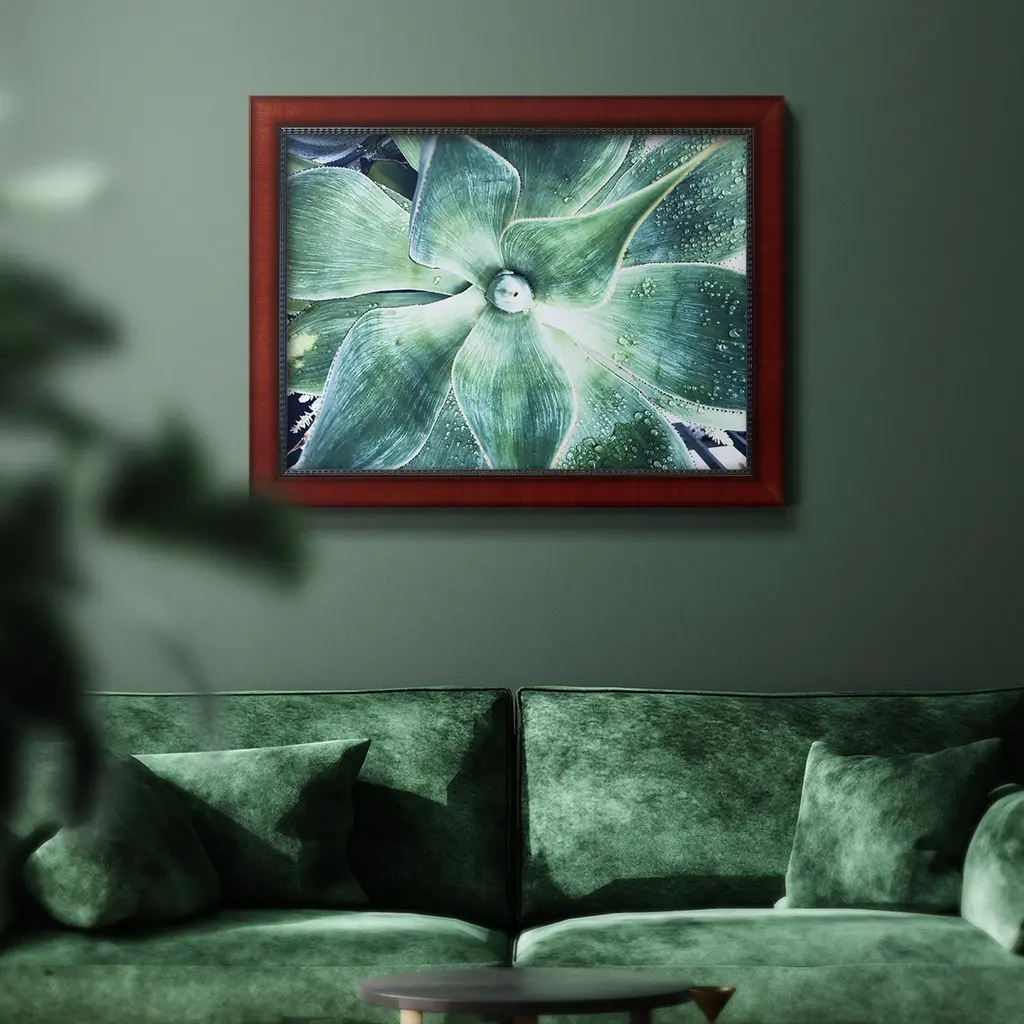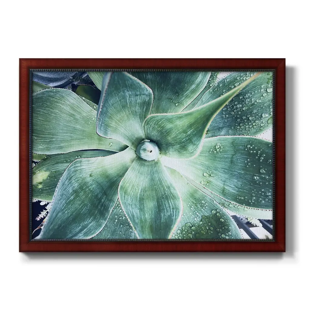 Green Tropical Succulent VII Premium Framed Canvas- Ready to Hang A Premium Framed Canvas created to last. Framed in distressed wood and available in an array of sizes and colors Featuring a beveled a solid wood stretcher bar, each piece comes ready to hand 3 SIZES AVAILABLE 16''X20'' - Overall Size 18'X27'' - Overall Size 24''x36'' - Overall Size Each piece is made to order. Each piece comes with hanging hardware. Made in the USA Ready to Hang Giclee Paper Print Acrylic Glass Beveled Matt Board