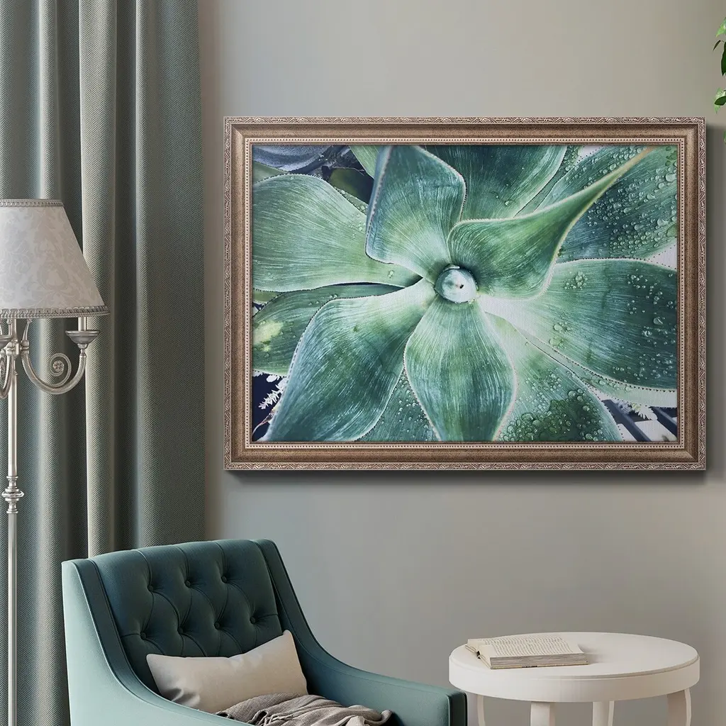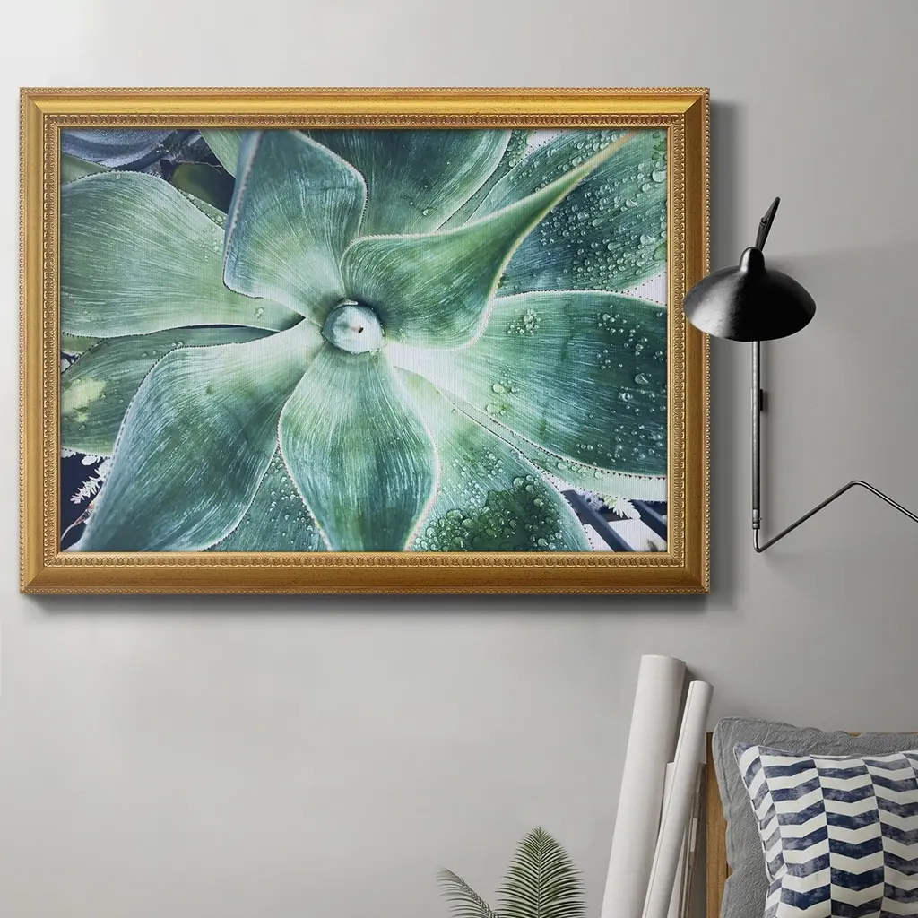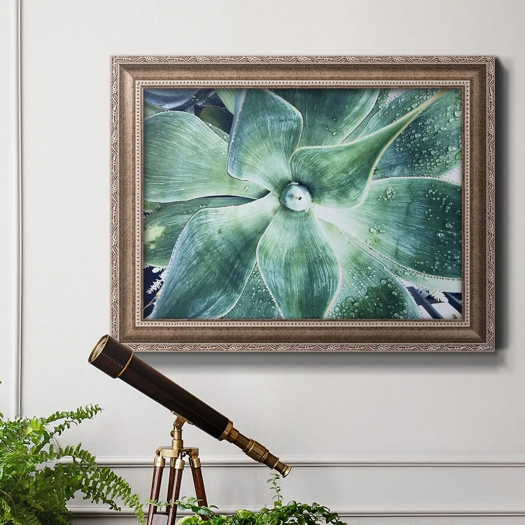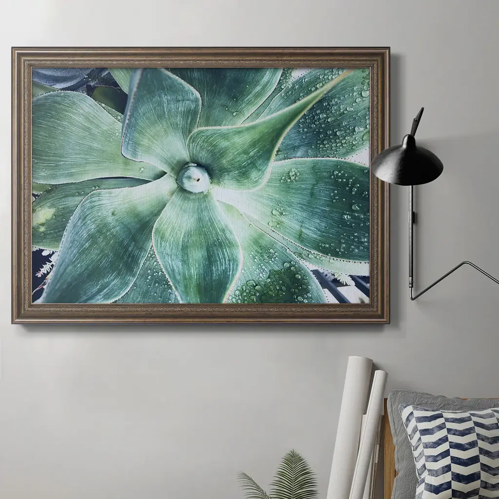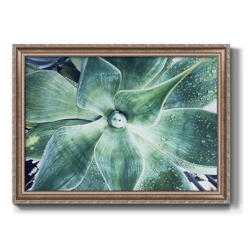 Green Tropical Succulent VII Premium Framed Canvas- Ready to Hang A Premium Framed Canvas created to last. Framed in distressed wood and available in an array of sizes and colors Featuring a beveled a solid wood stretcher bar, each piece comes ready to hand 3 SIZES AVAILABLE 16''X20'' - Overall Size 18'X27'' - Overall Size 24''x36'' - Overall Size Each piece is made to order. Each piece comes with hanging hardware. Made in the USA Ready to Hang Giclee Paper Print Acrylic Glass Beveled Matt Board