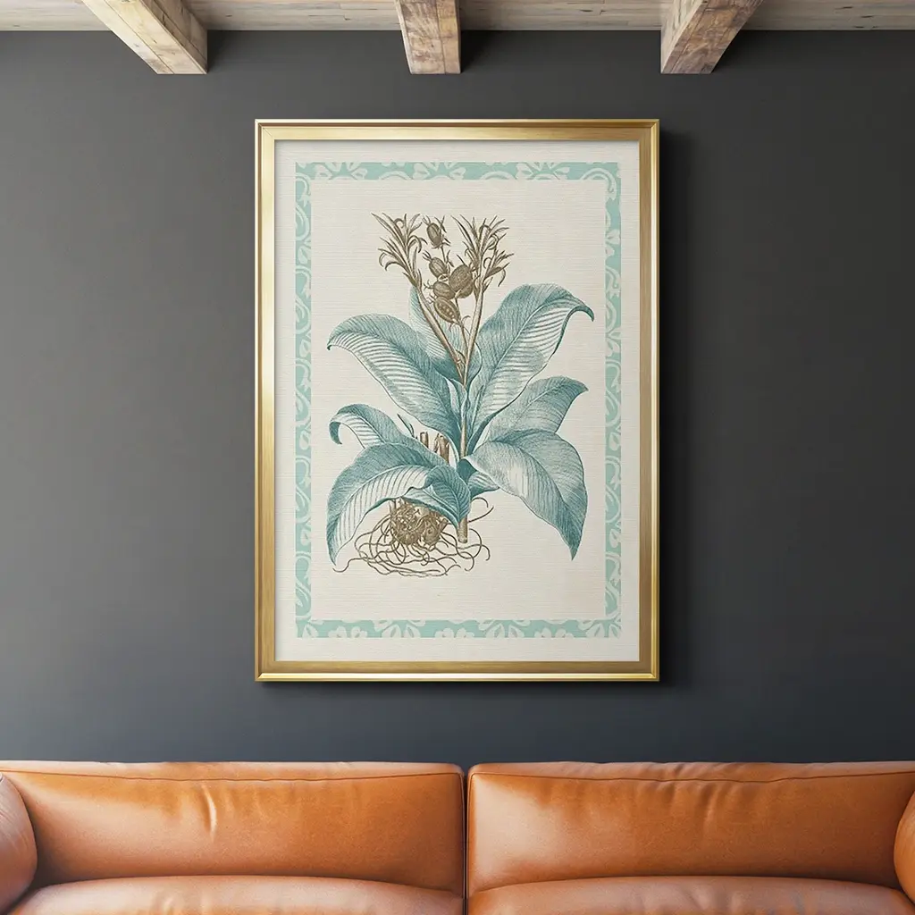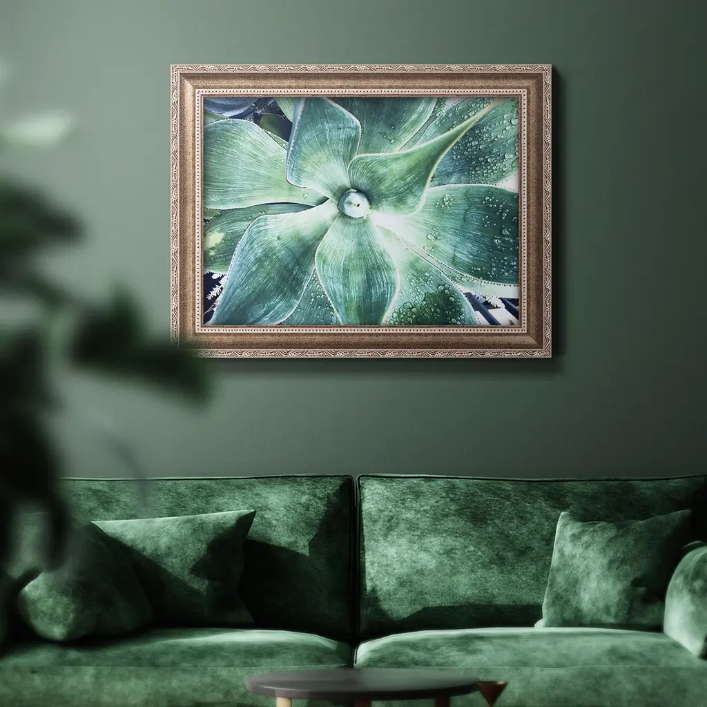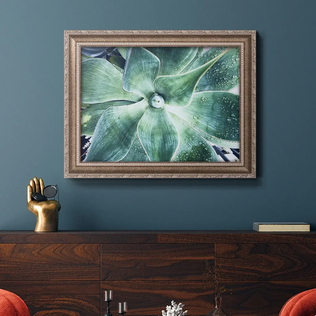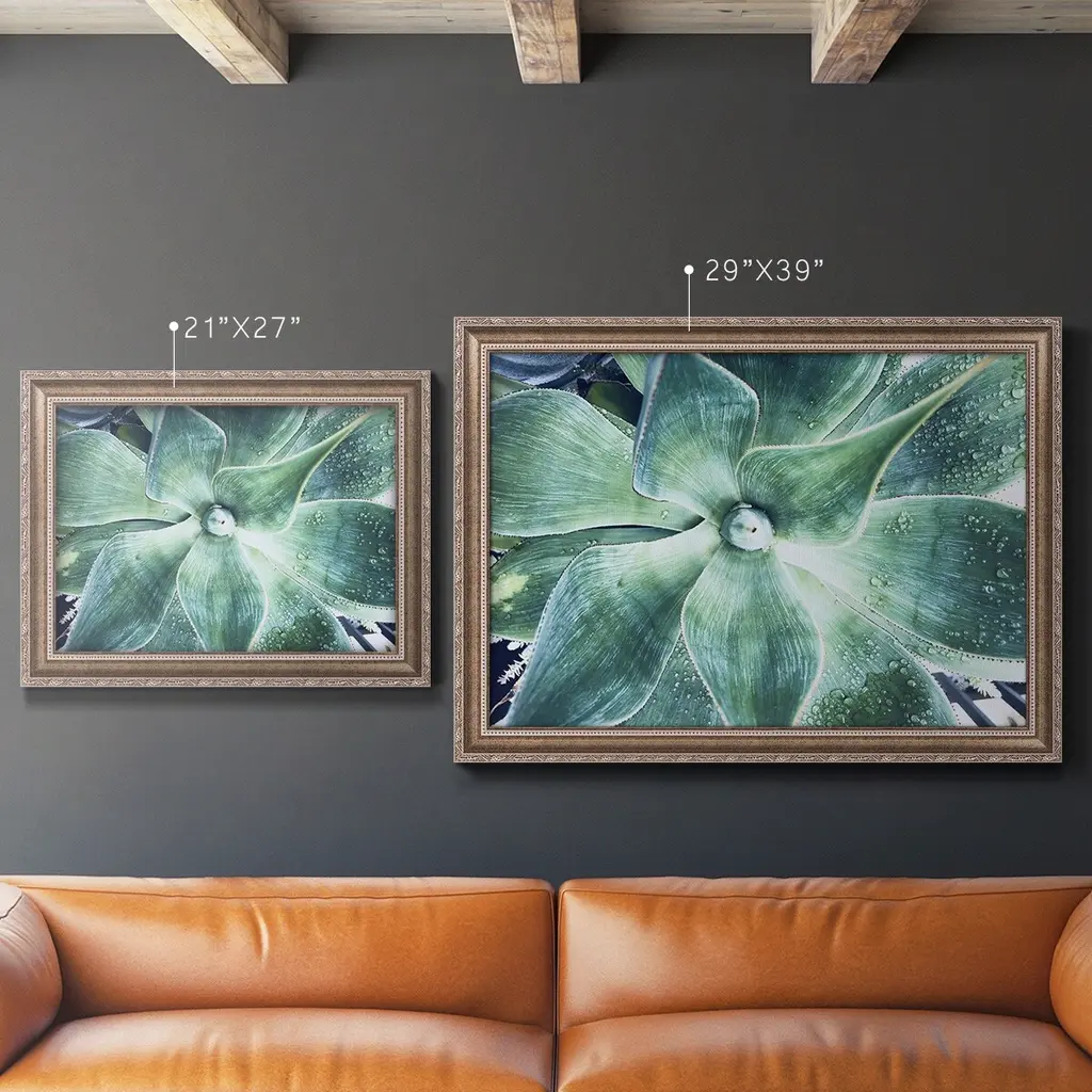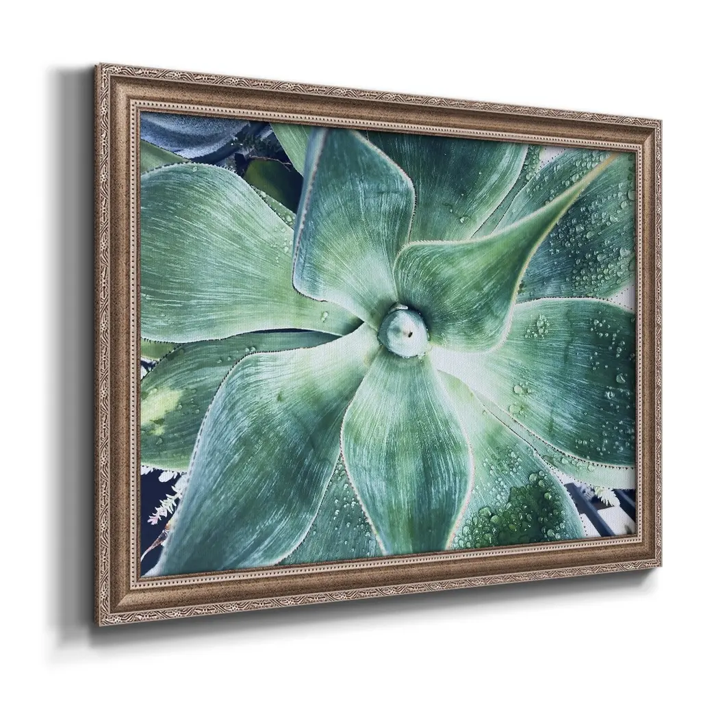 Green Tropical Succulent VII Premium Framed Canvas- Ready to Hang A Premium Framed Canvas created to last. Framed in distressed wood and available in an array of sizes and colors Featuring a beveled a solid wood stretcher bar, each piece comes ready to hand 3 SIZES AVAILABLE 16''X20'' - Overall Size 18'X27'' - Overall Size 24''x36'' - Overall Size Each piece is made to order. Each piece comes with hanging hardware. Made in the USA Ready to Hang Giclee Paper Print Acrylic Glass Beveled Matt Board