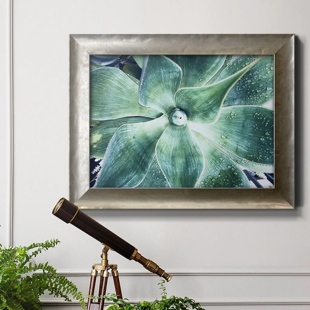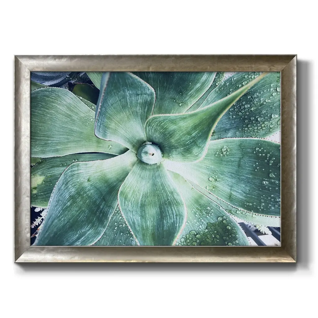 Green Tropical Succulent VII Premium Framed Canvas- Ready to Hang A Premium Framed Canvas created to last. Framed in distressed wood and available in an array of sizes and colors Featuring a beveled a solid wood stretcher bar, each piece comes ready to hand 3 SIZES AVAILABLE 16''X20'' - Overall Size 18'X27'' - Overall Size 24''x36'' - Overall Size Each piece is made to order. Each piece comes with hanging hardware. Made in the USA Ready to Hang Giclee Paper Print Acrylic Glass Beveled Matt Board
