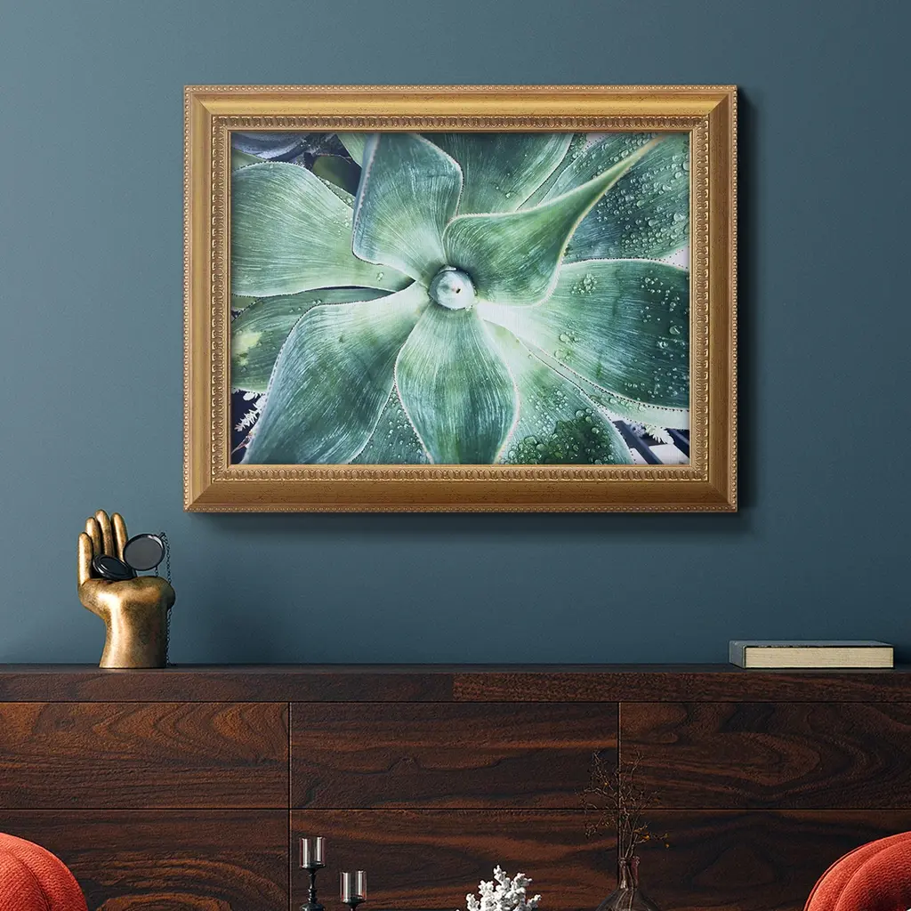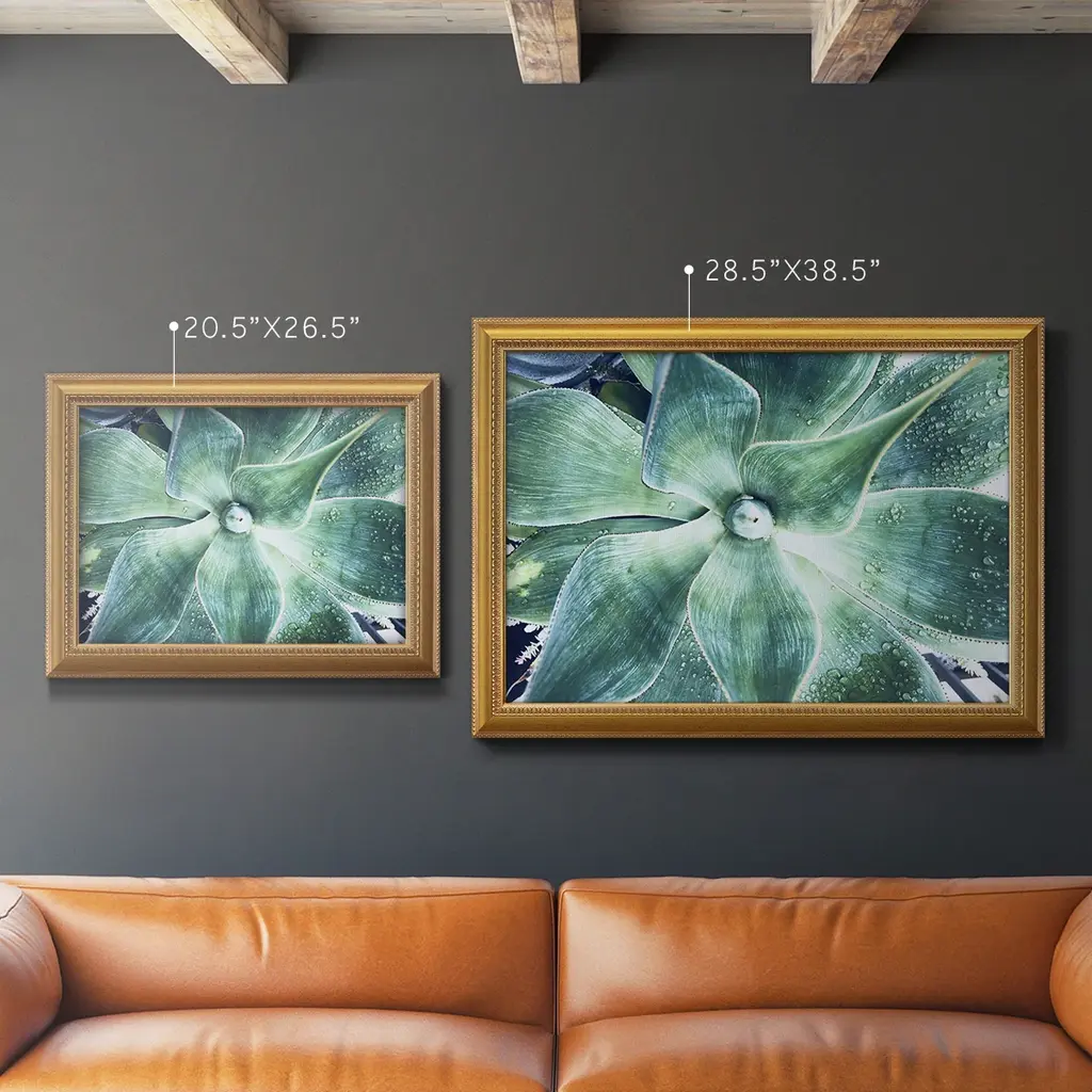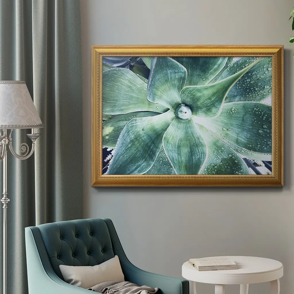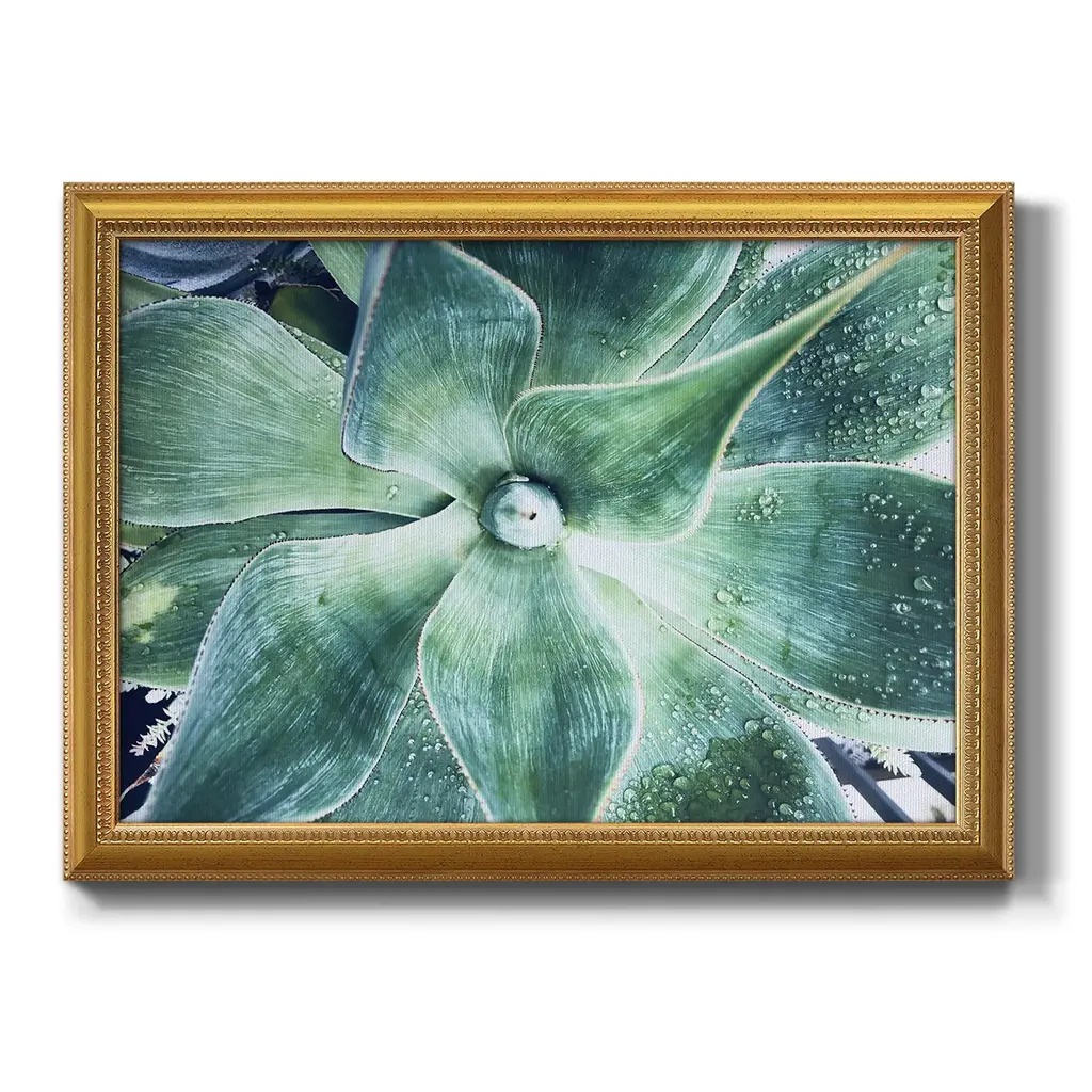Green Tropical Succulent VII Premium Framed Canvas- Ready to Hang A Premium Framed Canvas created to last. Framed in distressed wood and available in an array of sizes and colors Featuring a beveled a solid wood stretcher bar, each piece comes ready to hand 3 SIZES AVAILABLE 16''X20'' - Overall Size 18'X27'' - Overall Size 24''x36'' - Overall Size Each piece is made to order. Each piece comes with hanging hardware. Made in the USA Ready to Hang Giclee Paper Print Acrylic Glass Beveled Matt Board