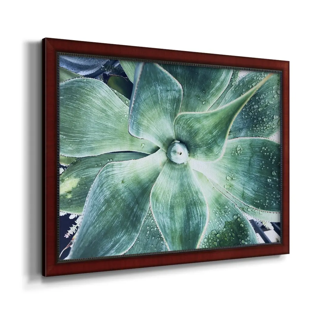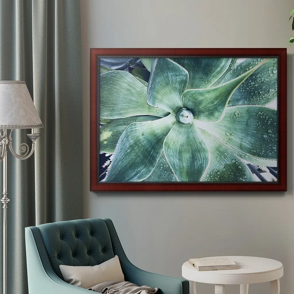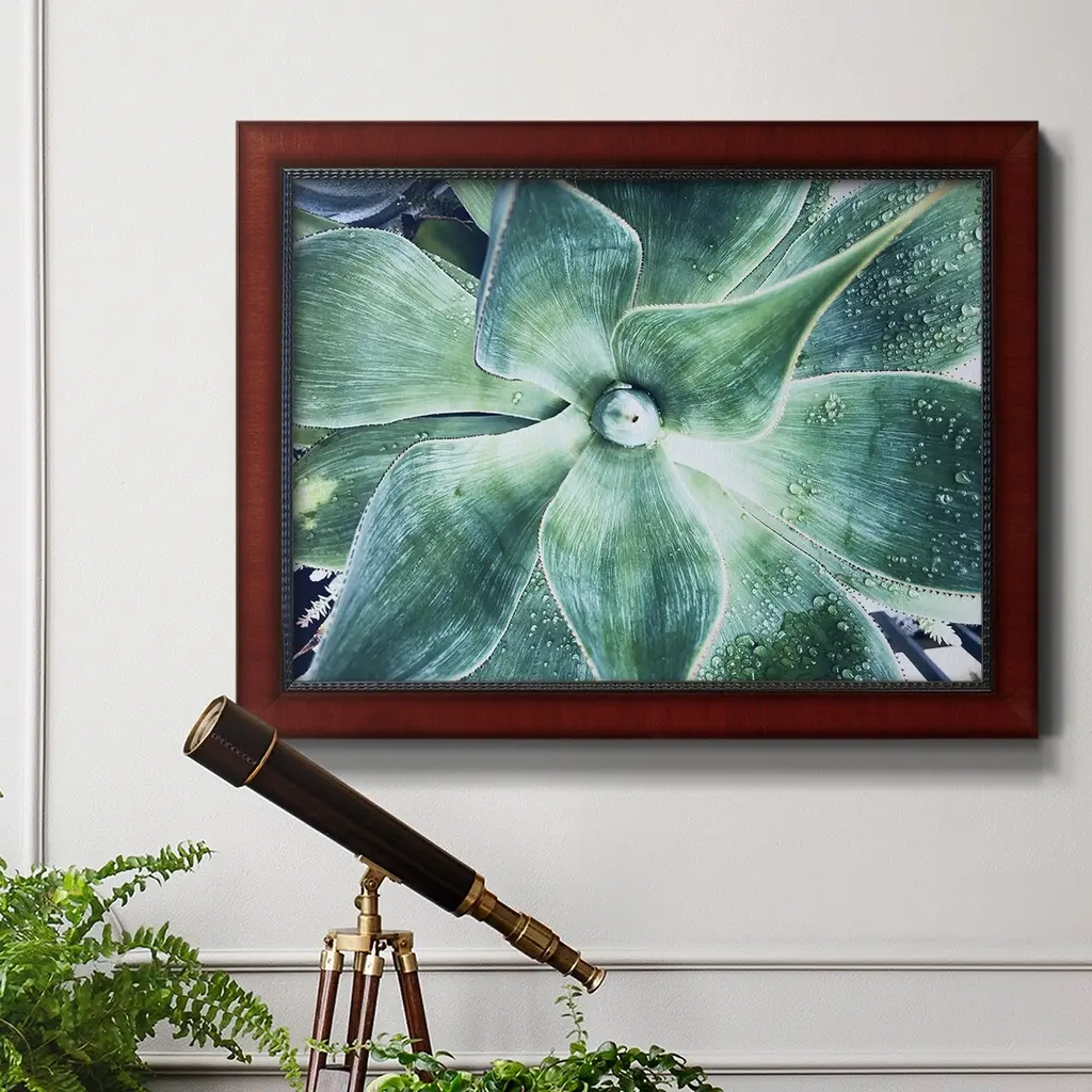Green Tropical Succulent VII Premium Framed Canvas- Ready to Hang A Premium Framed Canvas created to last. Framed in distressed wood and available in an array of sizes and colors Featuring a beveled a solid wood stretcher bar, each piece comes ready to hand 3 SIZES AVAILABLE 16''X20'' - Overall Size 18'X27'' - Overall Size 24''x36'' - Overall Size Each piece is made to order. Each piece comes with hanging hardware. Made in the USA Ready to Hang Giclee Paper Print Acrylic Glass Beveled Matt Board