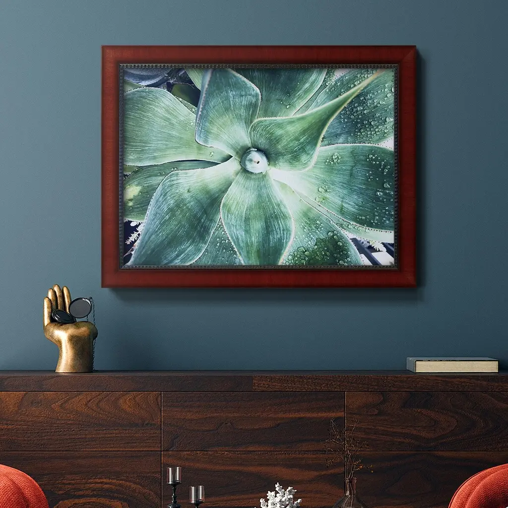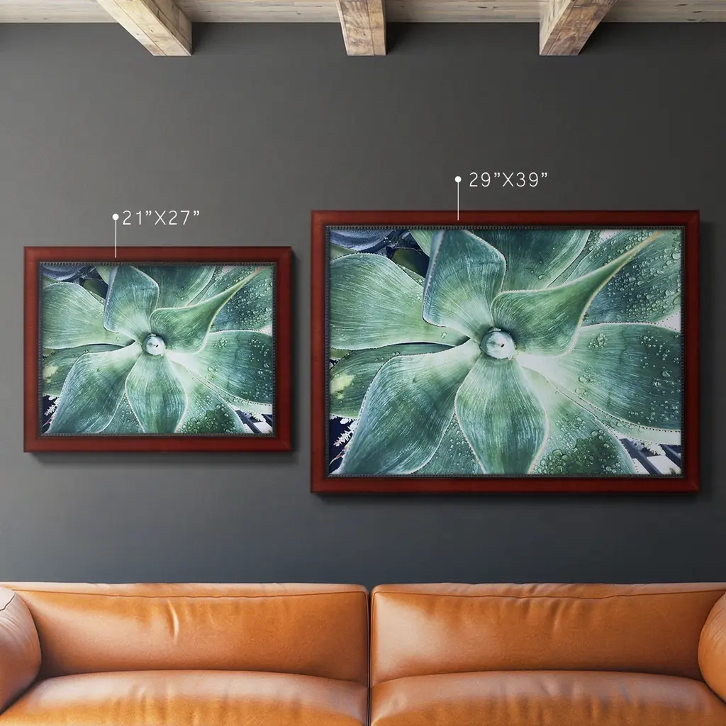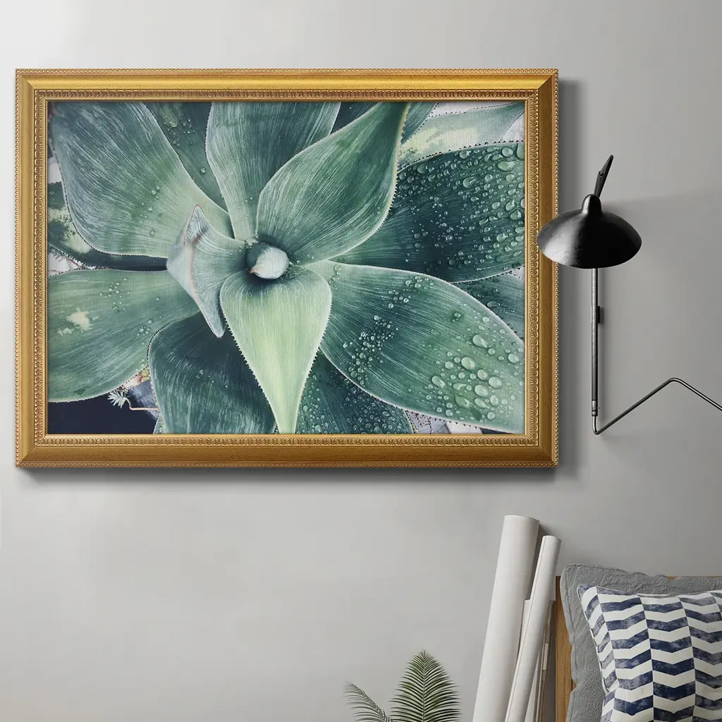 Green Tropical Succulent VII Premium Framed Canvas- Ready to Hang A Premium Framed Canvas created to last. Framed in distressed wood and available in an array of sizes and colors Featuring a beveled a solid wood stretcher bar, each piece comes ready to hand 3 SIZES AVAILABLE 16''X20'' - Overall Size 18'X27'' - Overall Size 24''x36'' - Overall Size Each piece is made to order. Each piece comes with hanging hardware. Made in the USA Ready to Hang Giclee Paper Print Acrylic Glass Beveled Matt Board