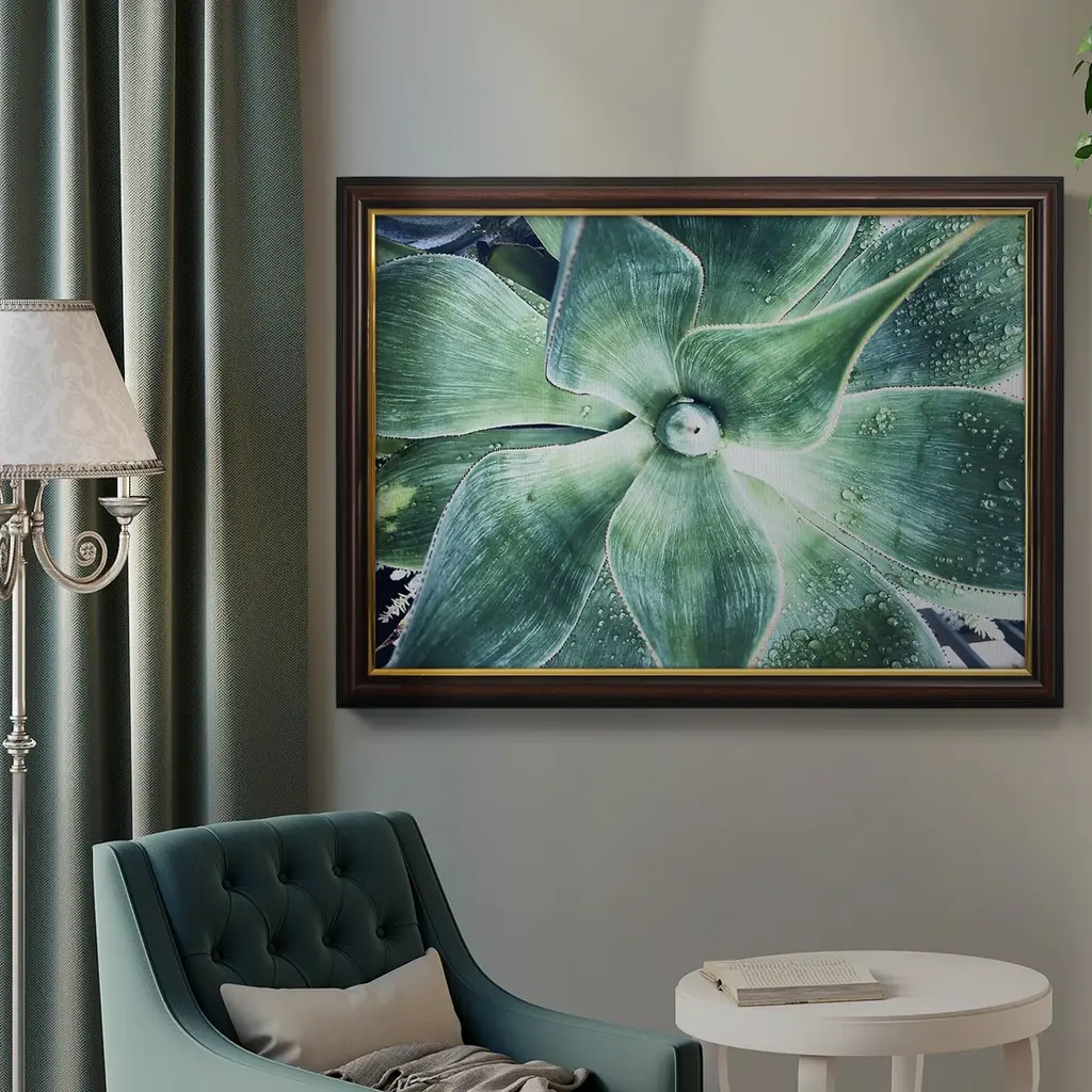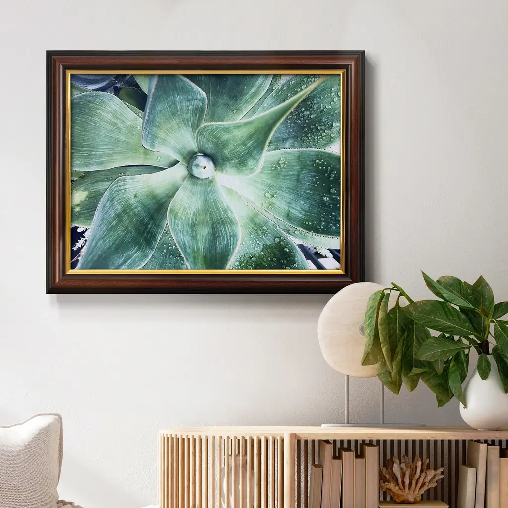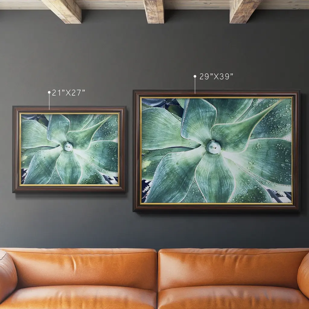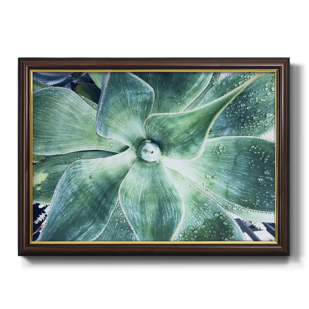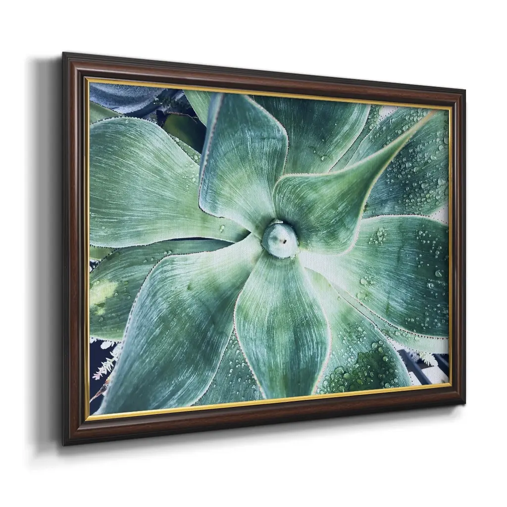 Green Tropical Succulent VII Premium Framed Canvas- Ready to Hang A Premium Framed Canvas created to last. Framed in distressed wood and available in an array of sizes and colors Featuring a beveled a solid wood stretcher bar, each piece comes ready to hand 3 SIZES AVAILABLE 16''X20'' - Overall Size 18'X27'' - Overall Size 24''x36'' - Overall Size Each piece is made to order. Each piece comes with hanging hardware. Made in the USA Ready to Hang Giclee Paper Print Acrylic Glass Beveled Matt Board