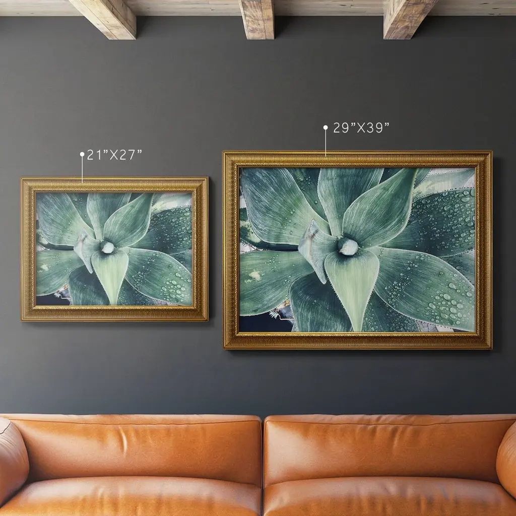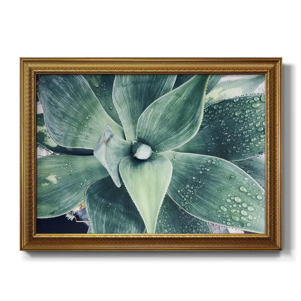 Green Tropical Succulent VIII Premium Framed Canvas- Ready to Hang A Premium Framed Canvas created to last. Framed in distressed wood and available in an array of sizes and colors Featuring a beveled a solid wood stretcher bar, each piece comes ready to hand 3 SIZES AVAILABLE 16''X20'' - Overall Size 18'X27'' - Overall Size 24''x36'' - Overall Size Each piece is made to order. Each piece comes with hanging hardware. Made in the USA Ready to Hang Giclee Paper Print Acrylic Glass Beveled Matt Board