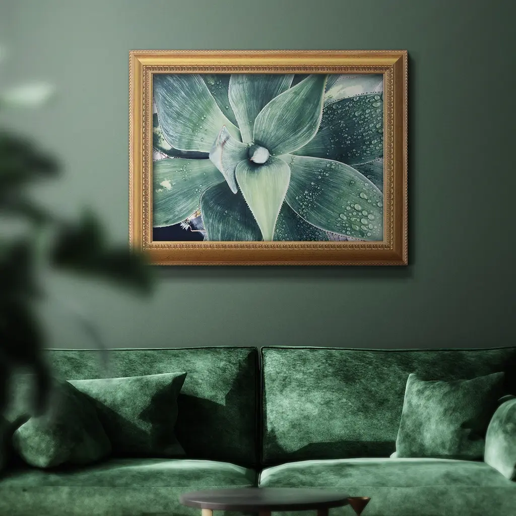 Green Tropical Succulent VIII Premium Framed Canvas- Ready to Hang A Premium Framed Canvas created to last. Framed in distressed wood and available in an array of sizes and colors Featuring a beveled a solid wood stretcher bar, each piece comes ready to hand 3 SIZES AVAILABLE 16''X20'' - Overall Size 18'X27'' - Overall Size 24''x36'' - Overall Size Each piece is made to order. Each piece comes with hanging hardware. Made in the USA Ready to Hang Giclee Paper Print Acrylic Glass Beveled Matt Board