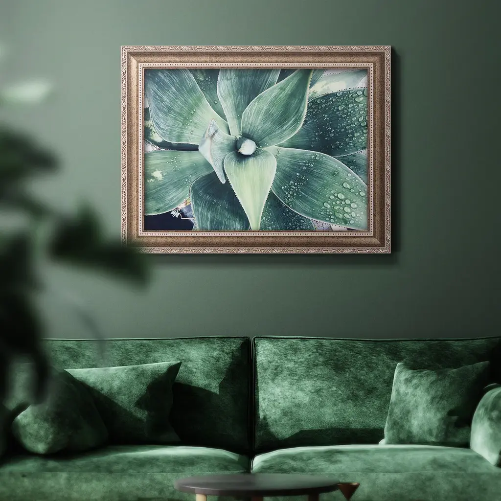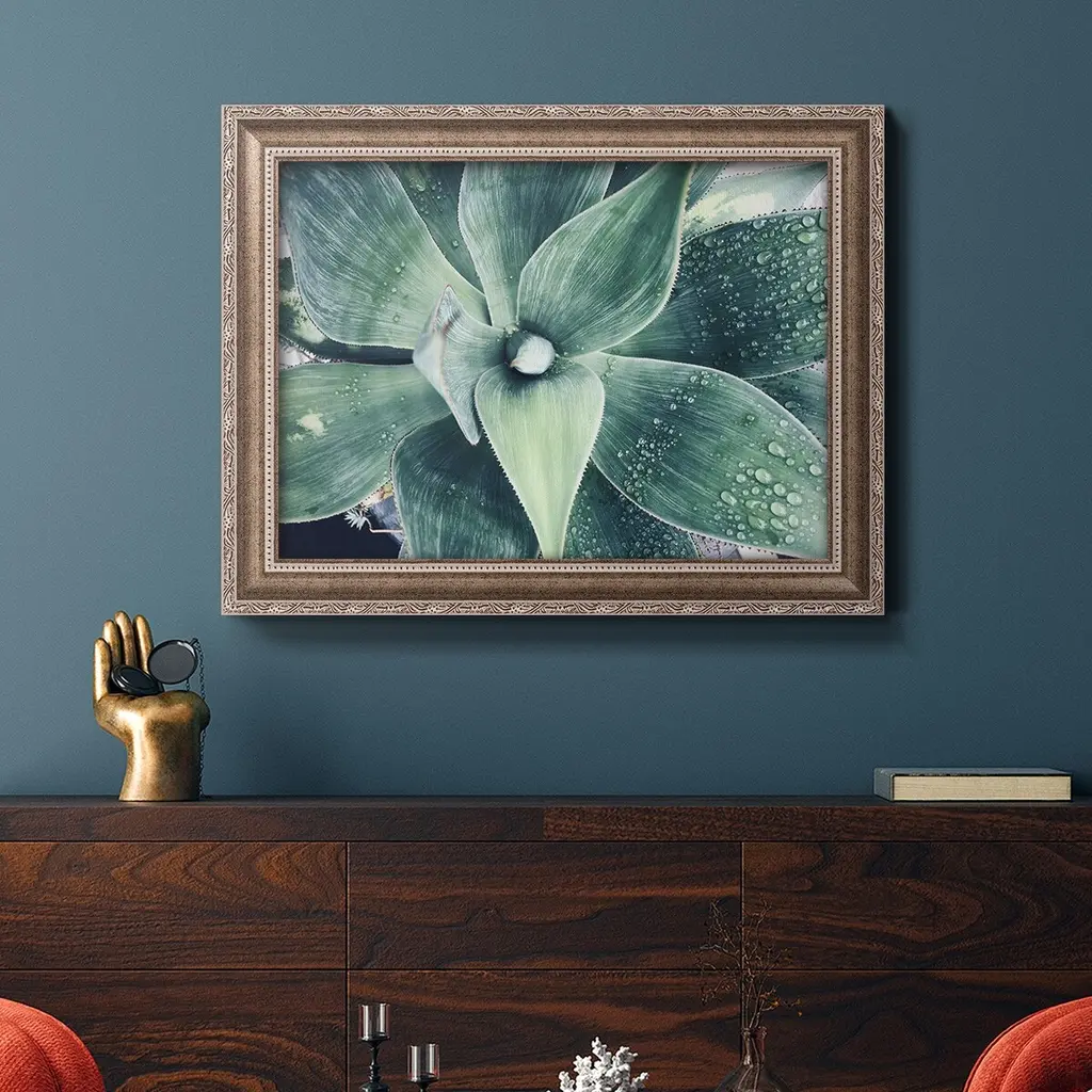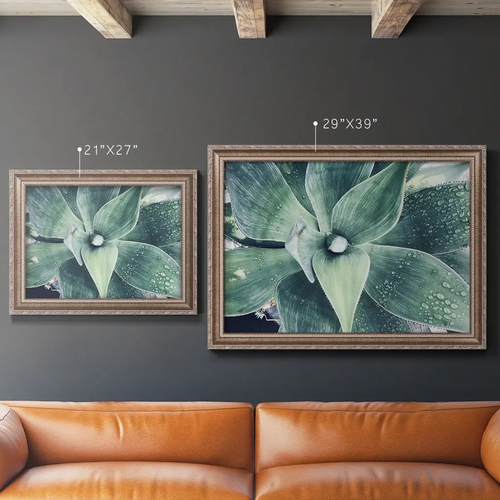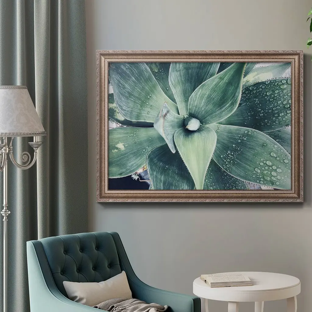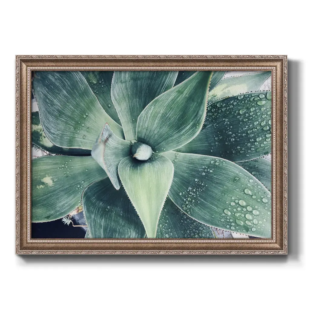 Green Tropical Succulent VIII Premium Framed Canvas- Ready to Hang A Premium Framed Canvas created to last. Framed in distressed wood and available in an array of sizes and colors Featuring a beveled a solid wood stretcher bar, each piece comes ready to hand 3 SIZES AVAILABLE 16''X20'' - Overall Size 18'X27'' - Overall Size 24''x36'' - Overall Size Each piece is made to order. Each piece comes with hanging hardware. Made in the USA Ready to Hang Giclee Paper Print Acrylic Glass Beveled Matt Board