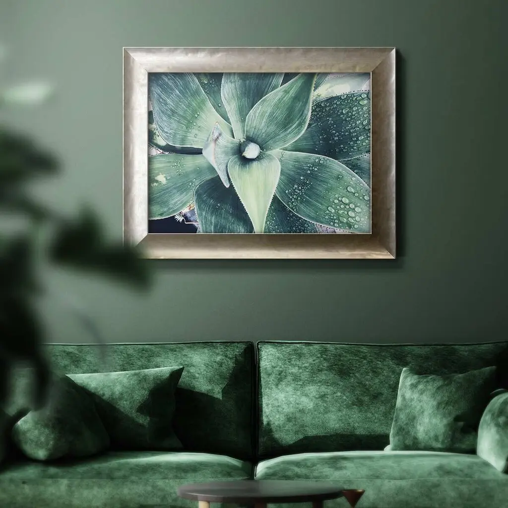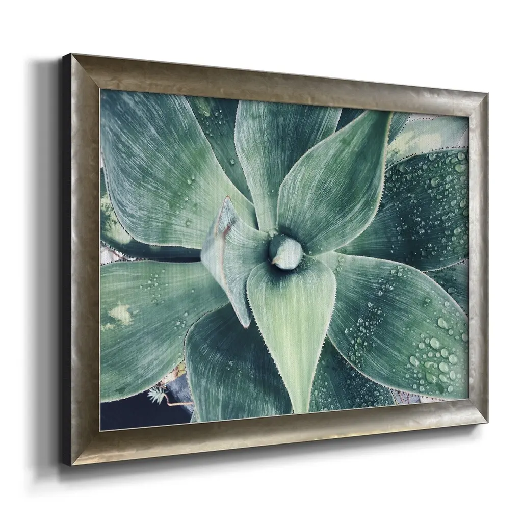 Green Tropical Succulent VIII Premium Framed Canvas- Ready to Hang A Premium Framed Canvas created to last. Framed in distressed wood and available in an array of sizes and colors Featuring a beveled a solid wood stretcher bar, each piece comes ready to hand 3 SIZES AVAILABLE 16''X20'' - Overall Size 18'X27'' - Overall Size 24''x36'' - Overall Size Each piece is made to order. Each piece comes with hanging hardware. Made in the USA Ready to Hang Giclee Paper Print Acrylic Glass Beveled Matt Board