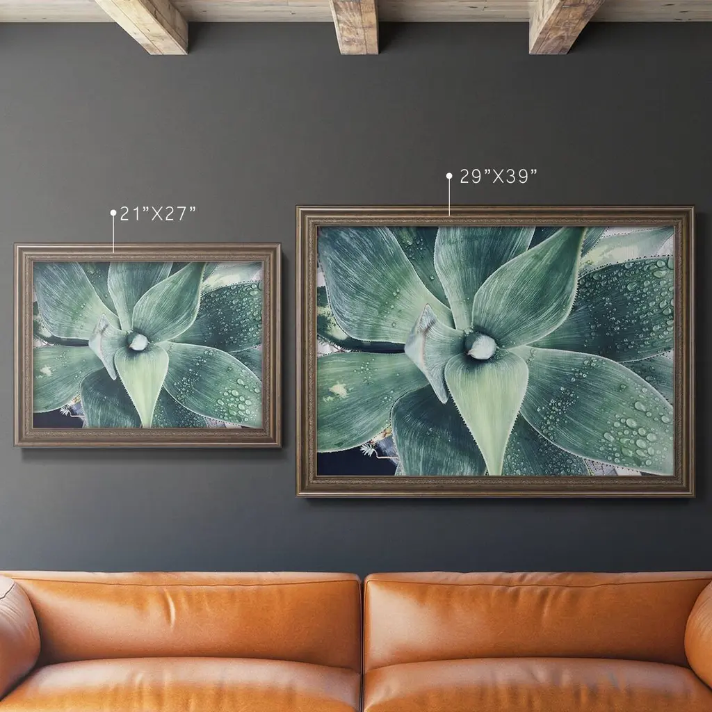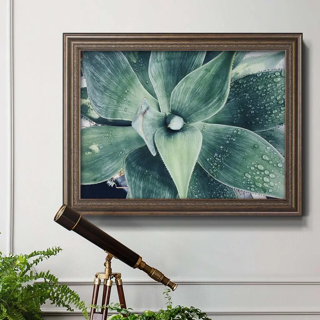 Green Tropical Succulent VIII Premium Framed Canvas- Ready to Hang A Premium Framed Canvas created to last. Framed in distressed wood and available in an array of sizes and colors Featuring a beveled a solid wood stretcher bar, each piece comes ready to hand 3 SIZES AVAILABLE 16''X20'' - Overall Size 18'X27'' - Overall Size 24''x36'' - Overall Size Each piece is made to order. Each piece comes with hanging hardware. Made in the USA Ready to Hang Giclee Paper Print Acrylic Glass Beveled Matt Board