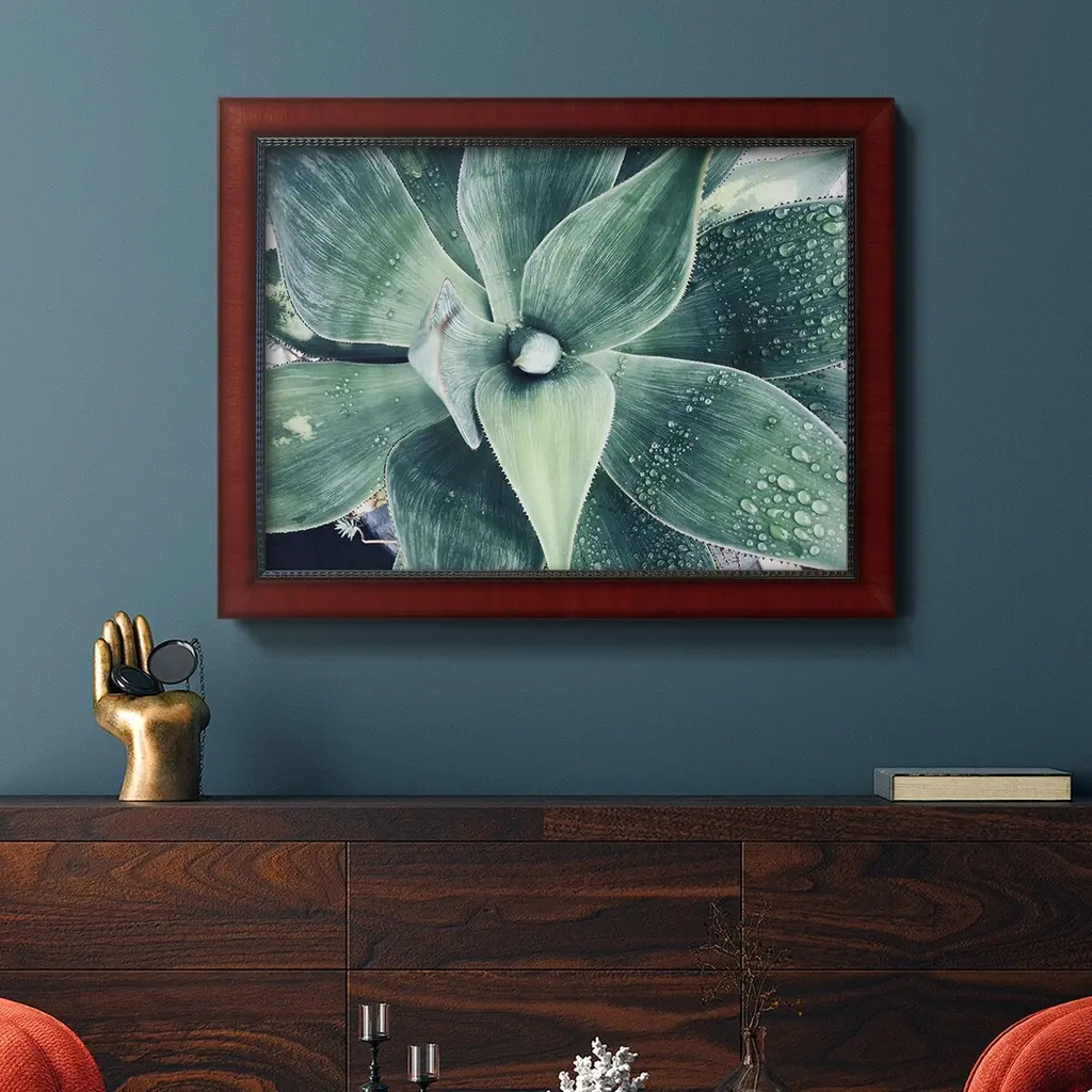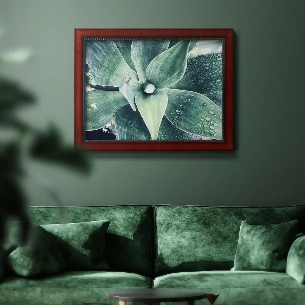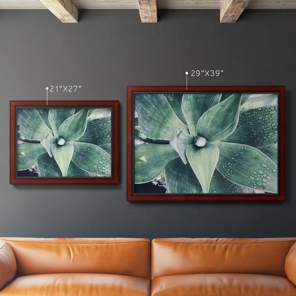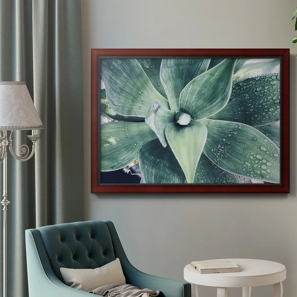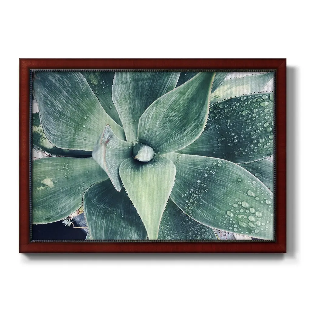 Green Tropical Succulent VIII Premium Framed Canvas- Ready to Hang A Premium Framed Canvas created to last. Framed in distressed wood and available in an array of sizes and colors Featuring a beveled a solid wood stretcher bar, each piece comes ready to hand 3 SIZES AVAILABLE 16''X20'' - Overall Size 18'X27'' - Overall Size 24''x36'' - Overall Size Each piece is made to order. Each piece comes with hanging hardware. Made in the USA Ready to Hang Giclee Paper Print Acrylic Glass Beveled Matt Board