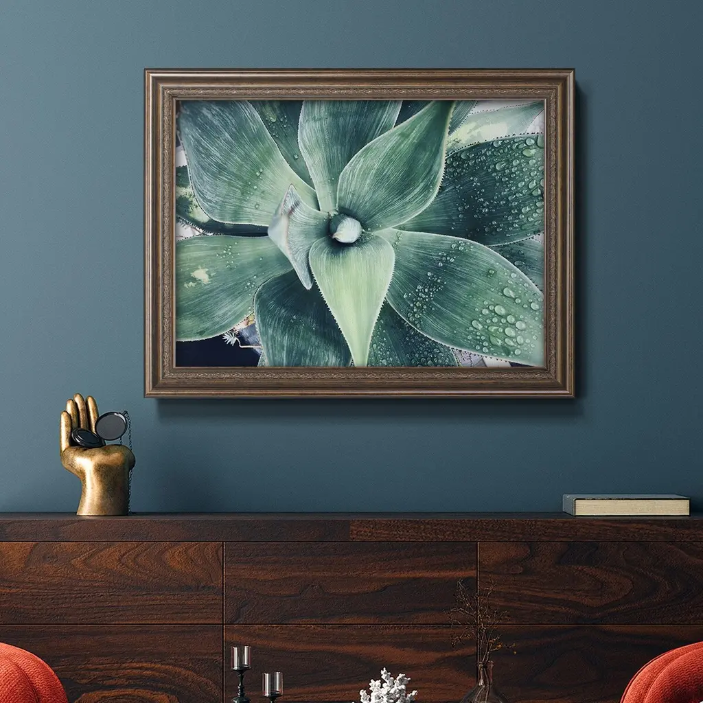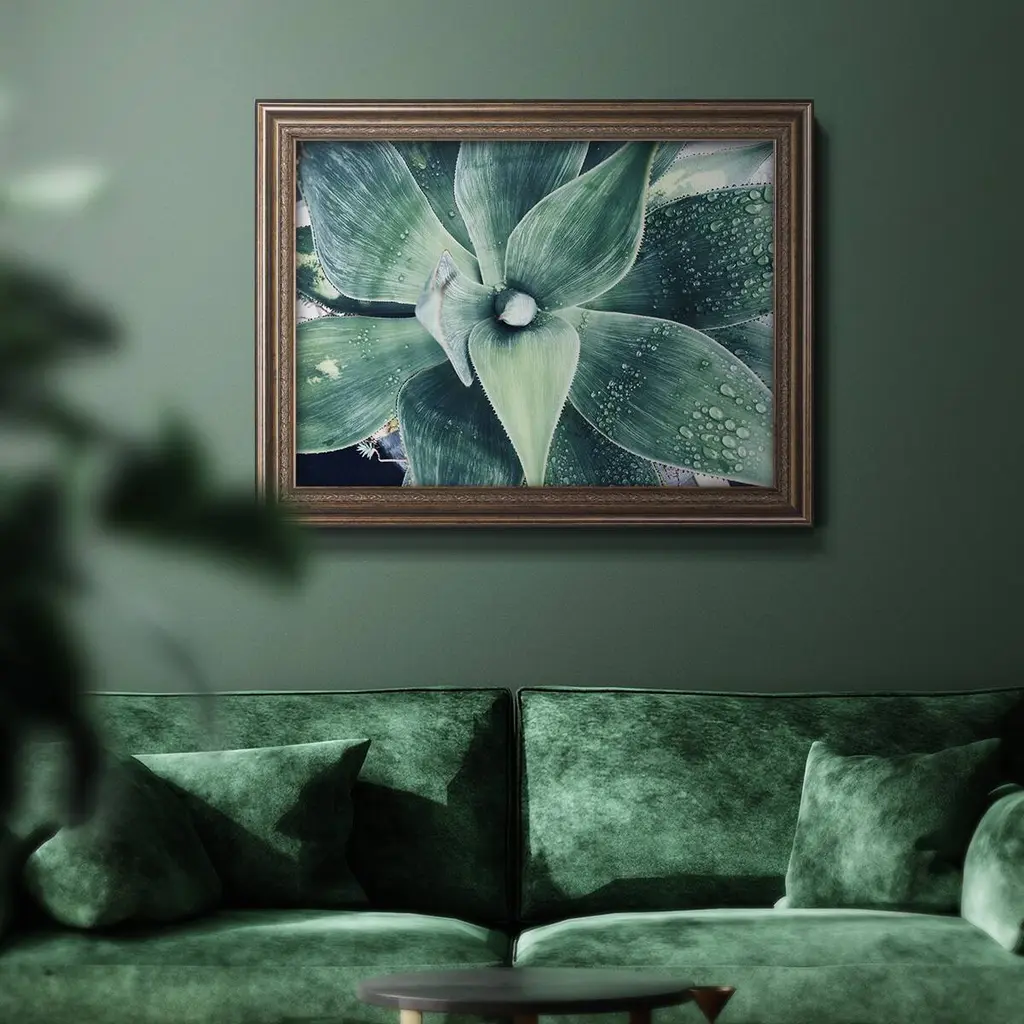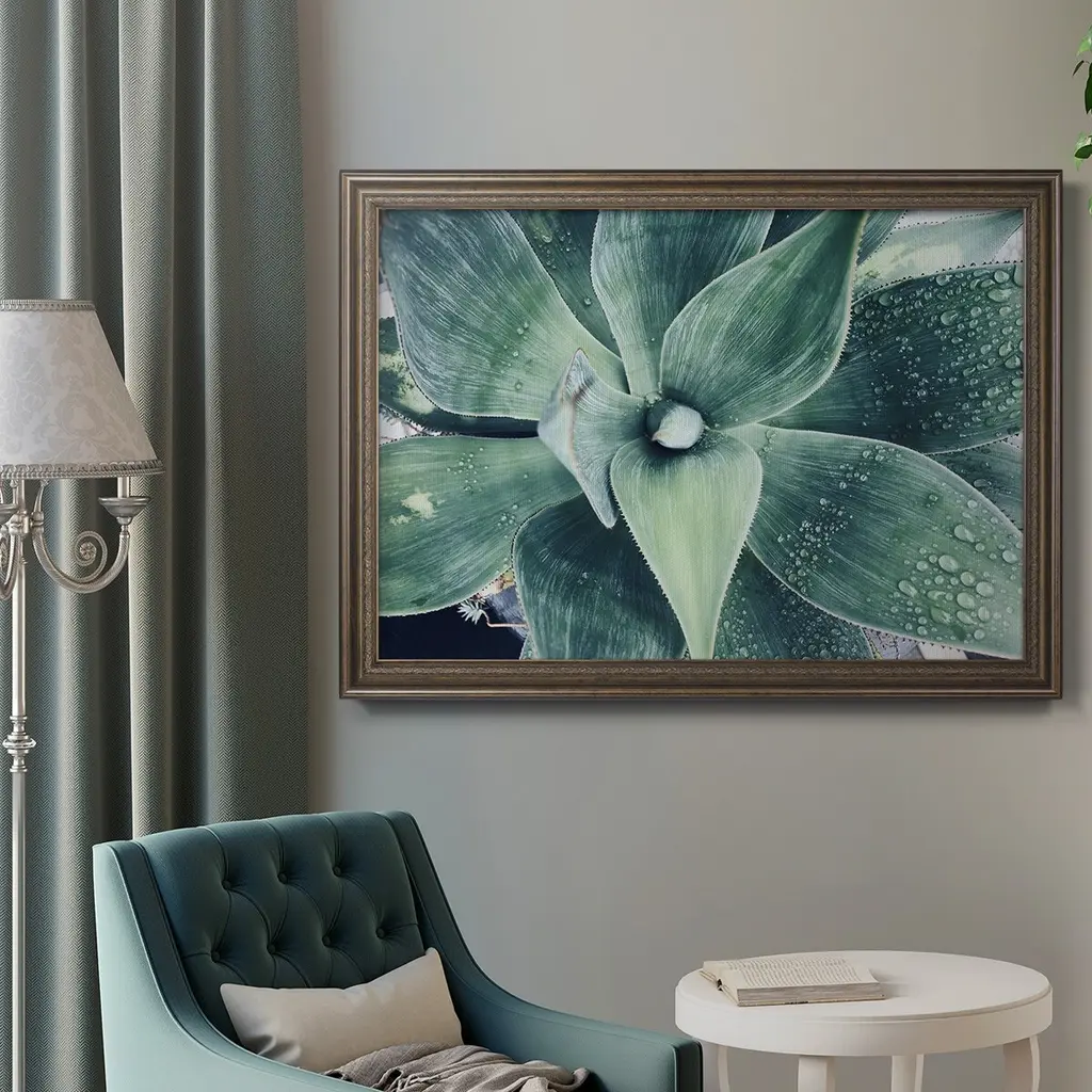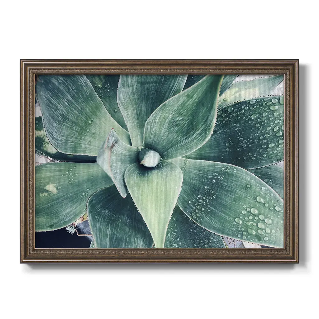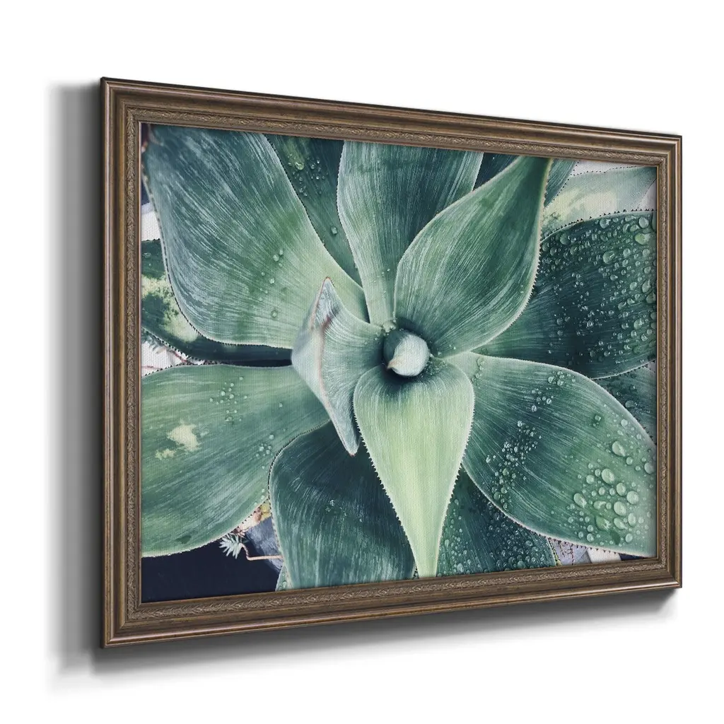 Green Tropical Succulent VIII Premium Framed Canvas- Ready to Hang A Premium Framed Canvas created to last. Framed in distressed wood and available in an array of sizes and colors Featuring a beveled a solid wood stretcher bar, each piece comes ready to hand 3 SIZES AVAILABLE 16''X20'' - Overall Size 18'X27'' - Overall Size 24''x36'' - Overall Size Each piece is made to order. Each piece comes with hanging hardware. Made in the USA Ready to Hang Giclee Paper Print Acrylic Glass Beveled Matt Board