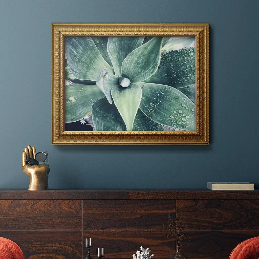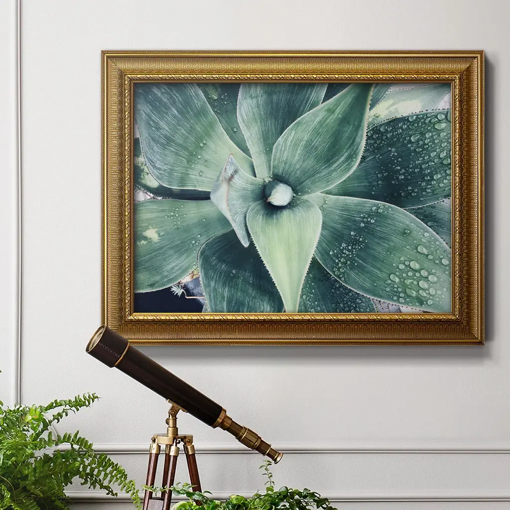 Green Tropical Succulent VIII Premium Framed Canvas- Ready to Hang A Premium Framed Canvas created to last. Framed in distressed wood and available in an array of sizes and colors Featuring a beveled a solid wood stretcher bar, each piece comes ready to hand 3 SIZES AVAILABLE 16''X20'' - Overall Size 18'X27'' - Overall Size 24''x36'' - Overall Size Each piece is made to order. Each piece comes with hanging hardware. Made in the USA Ready to Hang Giclee Paper Print Acrylic Glass Beveled Matt Board