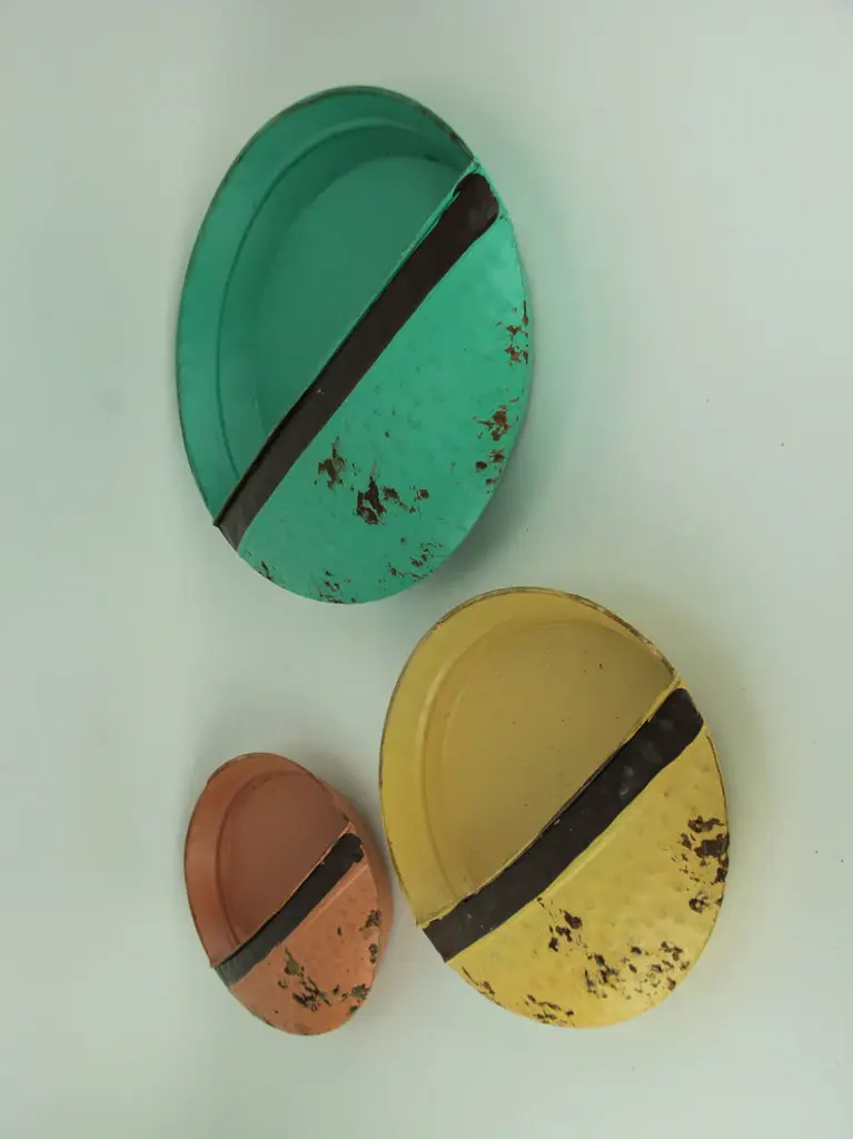 Green Yellow Orange Vintage Metal Round Wall Pockets Set Of 3