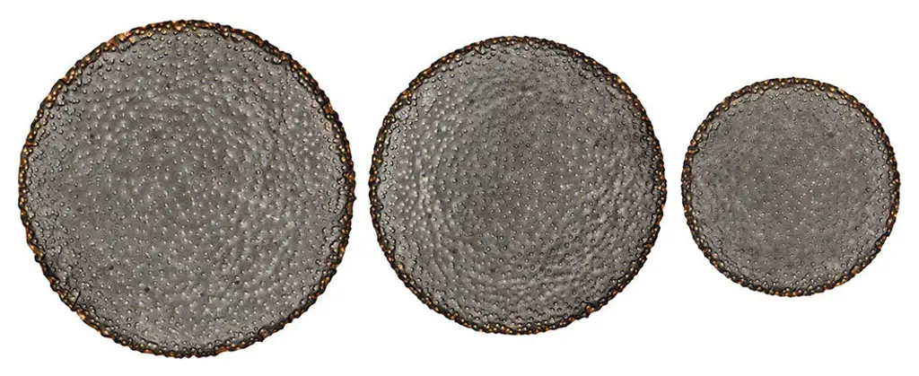 OVERALL SIZE - Green - 15 Inches in Diameter, 4.5 Inches Wide / Yellow - 12.25 Inches in Diameter, 4 Inches Wide / Red - 9.75 Inches in Diameter, 2.75 Inches WideMade of Metal in 3 Coordinated SizesDistressed Finish in Green, Yellow and Red with Faux Rust Marks Gives Them a Vintage AppearanceEasily Attaches to the Wall Using the Pre-Installed Keyhole Hangers On the BackA Charming and Clever Storage Option for Fresh or Faux Flowers Arrangements, Greenery or Other Decorative Items that Suit Your Decor StyleA unique and charming wall decoration, these vintage-looking wall pockets can hold various items from mail to fresh or faux flowers and greenery. The simple yet decorative design brings fun to function, and you can decorate them in so many ways. Display them together or on separate walls to tie the room''s whole look together. They are made of metal and feature a red, yellow, and green distressed finish with faux rust marks for a vintage patina. Small measures 9.75 inches in diameter, and 4.5 inches wide. Medium is 12.25 inches in diameter, 4 inches wide and the large is 15 inches in diameter, 4.5 inches wide.