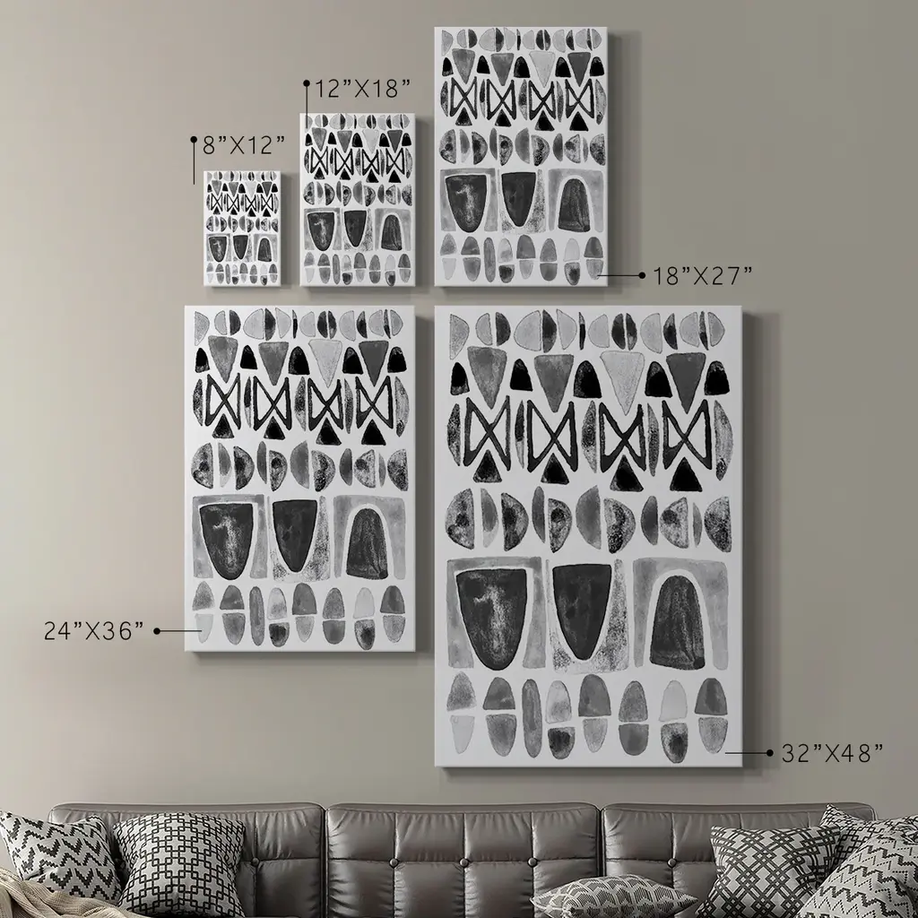 Grey Arches II Premium Gallery Wrapped Canvas - Ready to Hang A premium hand stretched gallery wrapped canvas print created to last. Featuring a beveled a solid wood stretcher bar, each piece comes ready to hand 6 SIZES AVAILABLE 8''X12'' - Overall Size 12''X18'' - Overall Size 18''X27'' - Overall Size 24''x36'' - Overall Size 32''x48'' - Overall Size 40''x60'' - Overall Size Each piece is made to order. Built to Last Each piece comes ready to hang Solid wood stretcher Fade and Water resistant Made domestically