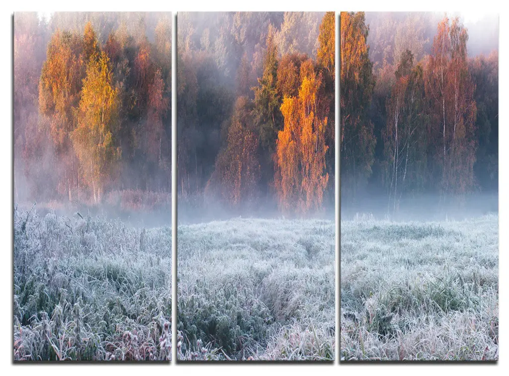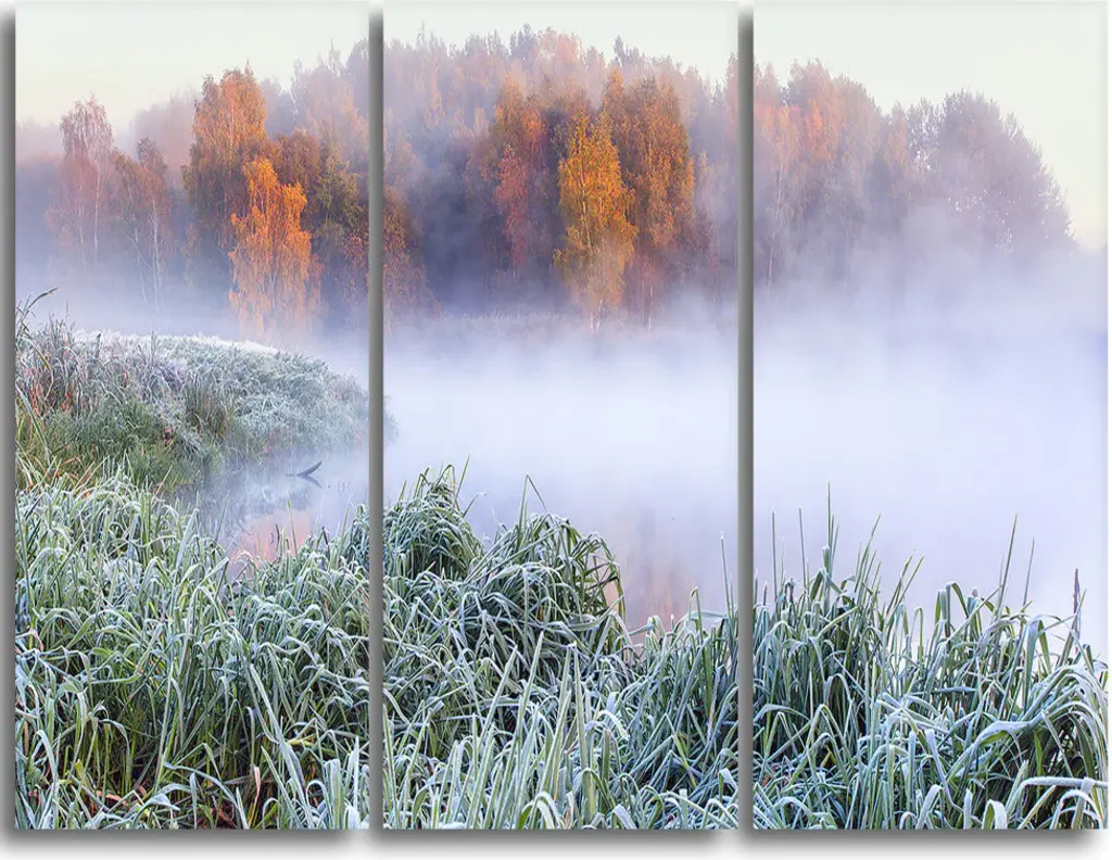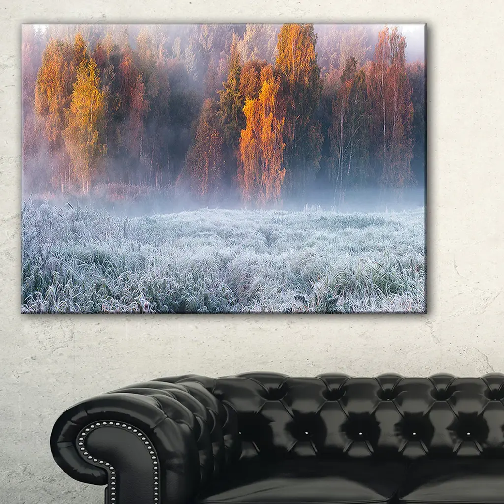 "Grey Hoarfrost Design By Winter" Landscape Print Wall Art, 32"x16"
