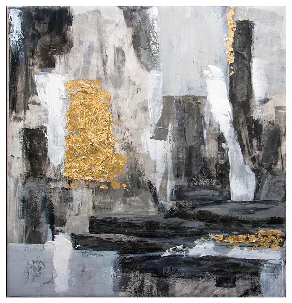 Artwork by Janet Van Arsdale printed with UV inks to high quality 1/8" thick brushed aluminum Dibond with a gloss UV/Anti-graffiti coating. 4 holes drilled for standoff hardware. Signature in the image. Includes Set of 4 1"D x 1"H Barrel aluminum stando