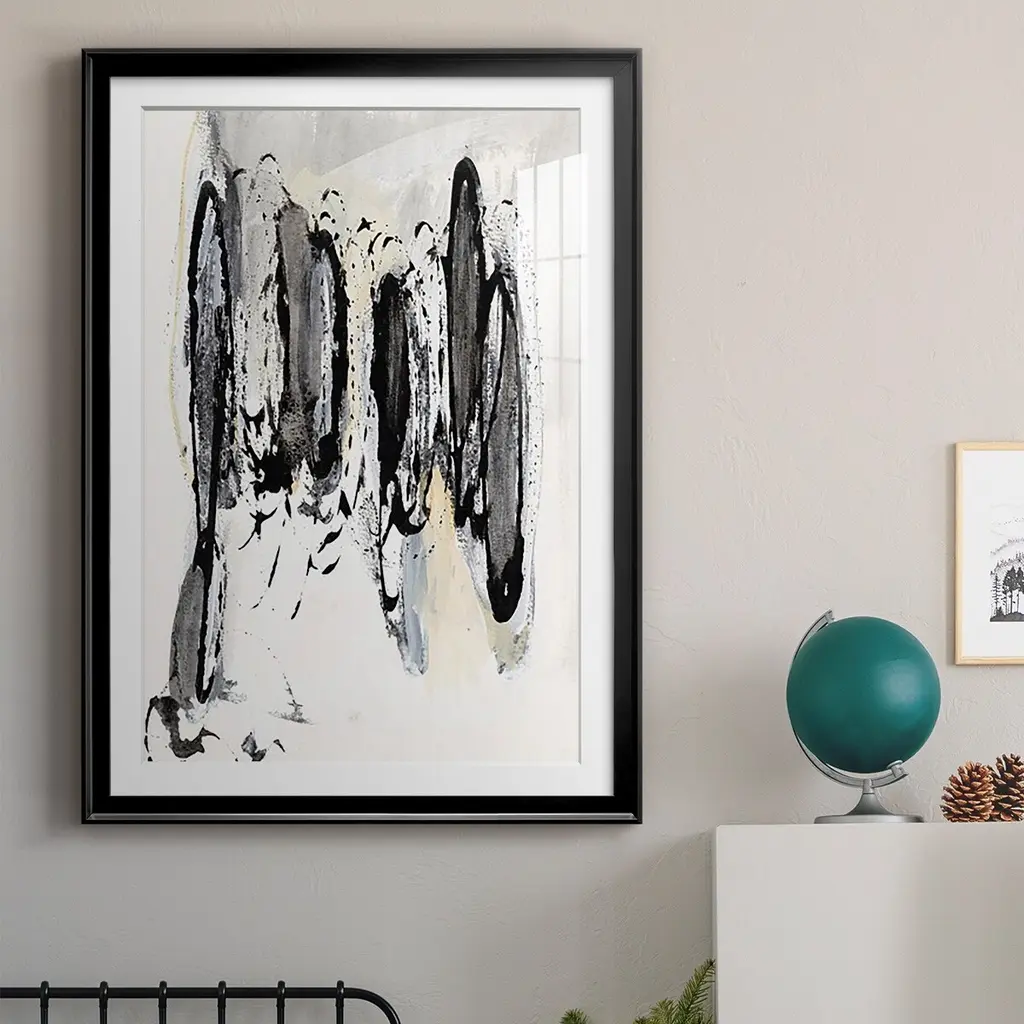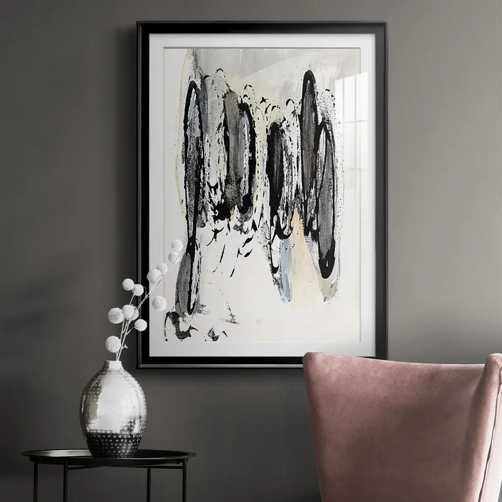 Grey Scribbles I Premium Framed Print - Ready to Hang A Premium Framed Print created to last. Framed in distressed wood and available in an array of sizes and colors Featuring a beveled a solid wood stretcher bar, each piece comes ready to hand 4 SIZES AVAILABLE 30.5''X42.5'' - Overall Size 26.5'X36.5'' - Overall Size 22.5''x30.5'' - Overall Size 18.5''x24.5'' - Overall Size Each piece is made to order. Each piece comes with hanging hardware. Made in the USA Ready to Hang Giclee Paper Print Acrylic Glass Beveled Matt Board
