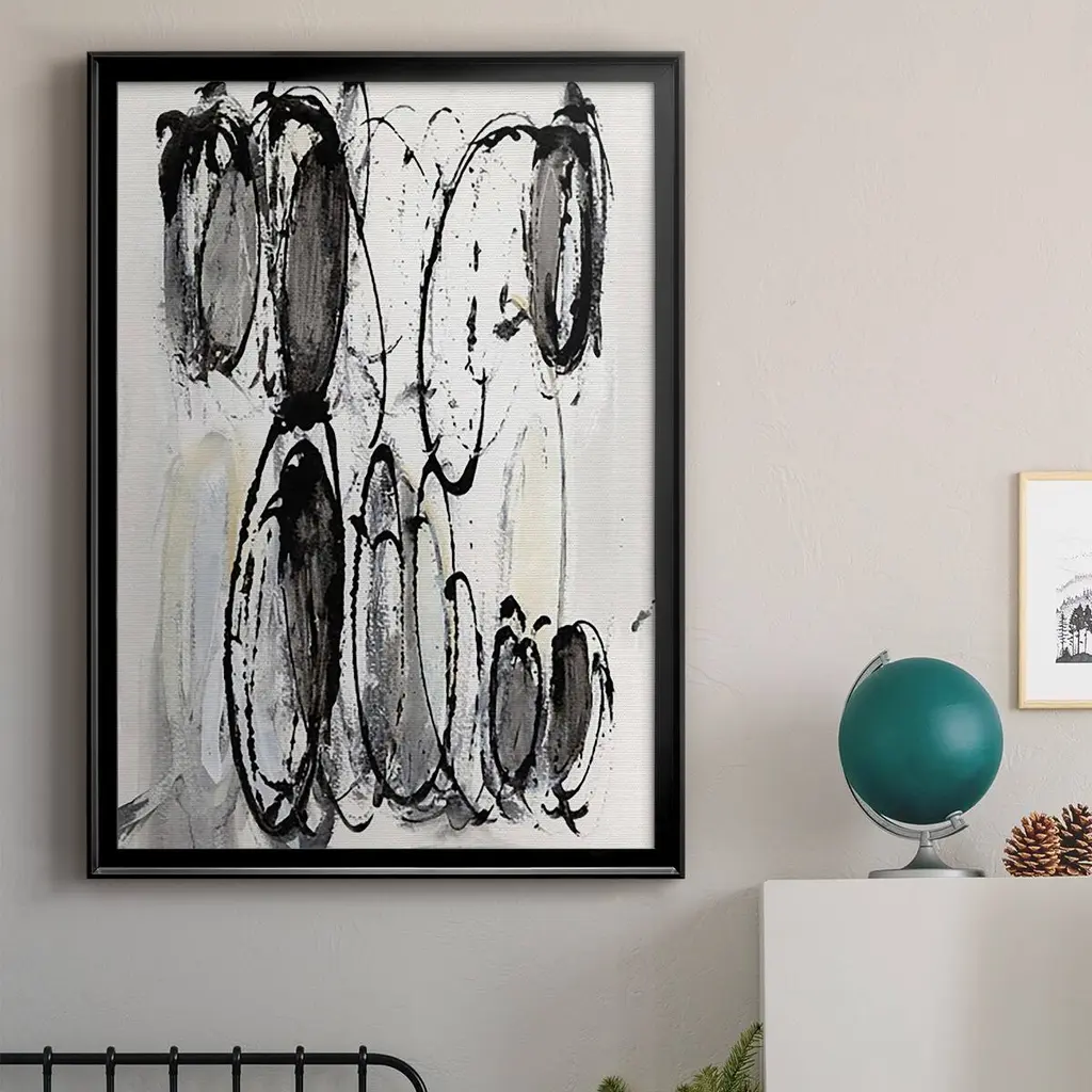 Grey Scribbles II Premium Framed Print - Ready to Hang A Premium Framed Print created to last. Framed in distressed wood and available in an array of sizes and colors Featuring a beveled a solid wood stretcher bar, each piece comes ready to hand 4 SIZES AVAILABLE 30.5''X42.5'' - Overall Size 26.5'X36.5'' - Overall Size 22.5''x30.5'' - Overall Size 18.5''x24.5'' - Overall Size Each piece is made to order. Each piece comes with hanging hardware. Made in the USA Ready to Hang