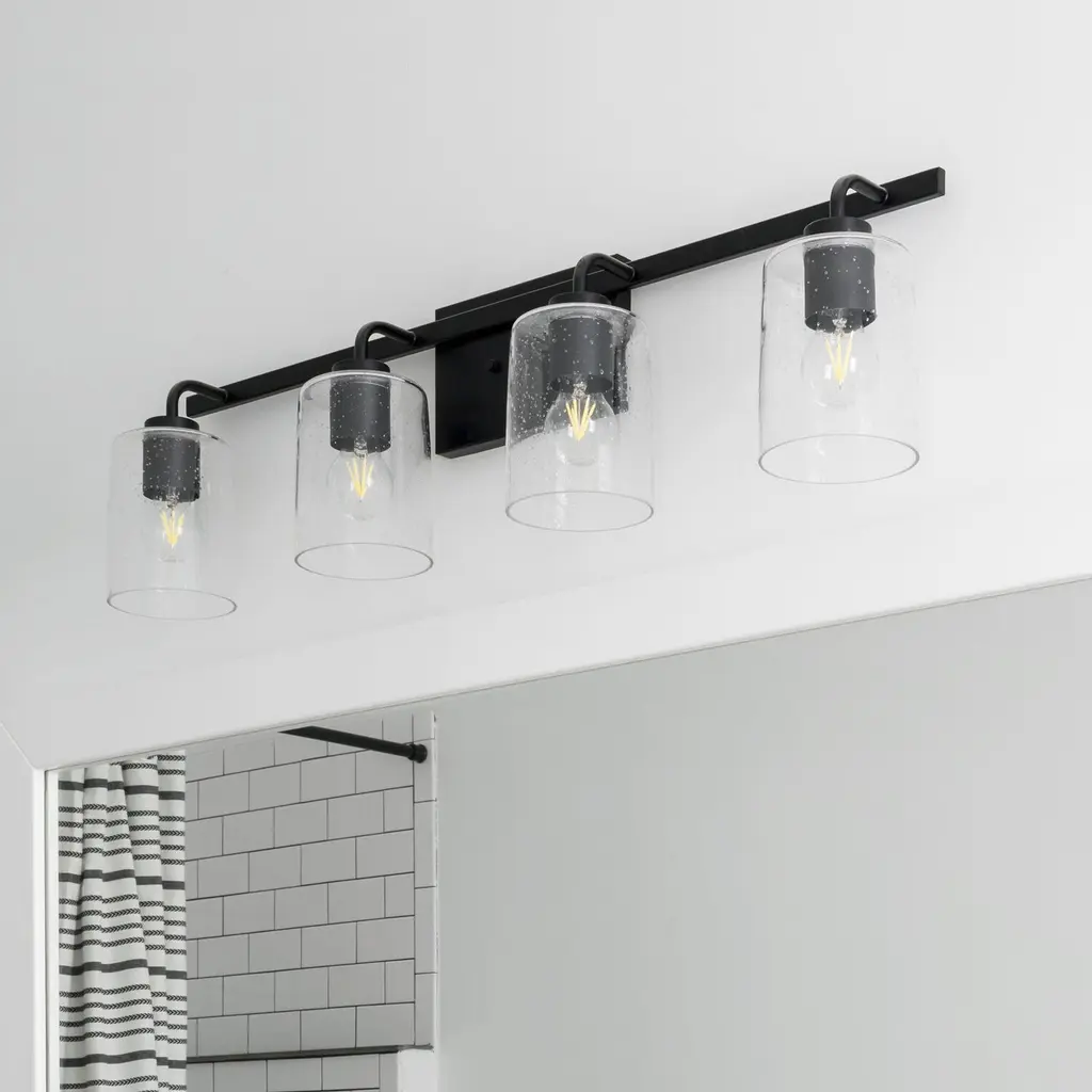 34" 4-Light Clear Seeded Glass Vanity in Matte Black