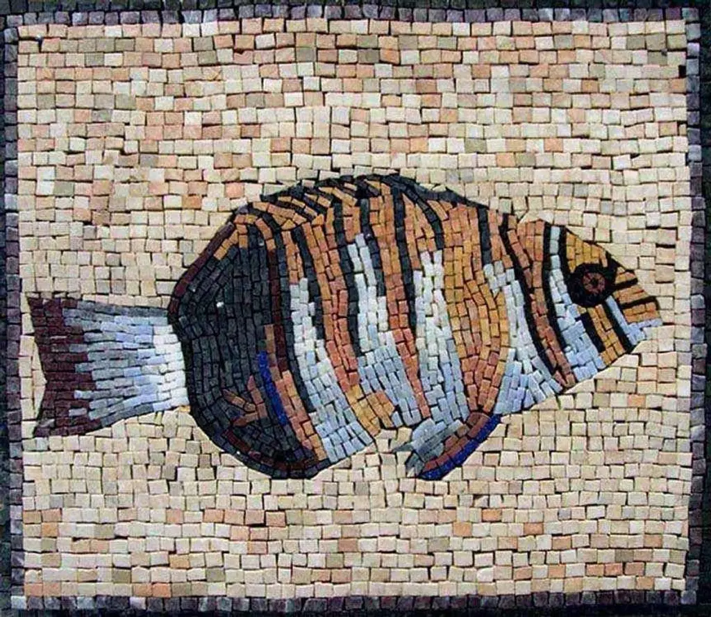 Group Of Swimming Fish Marble Mosaic | Luxury Handcrafted Art - 80cm X 50cm (31" X 20") / Without Frame