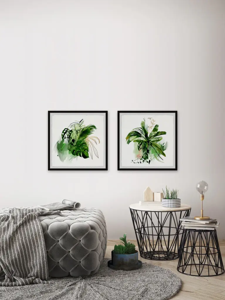 Make your space come to life with these two watercolor painting prints that feature a leafy green plant. Proudly printed in the USA, this piece is printed on high quality archive paper and professionally hand-framed. With wall-mounting hooks included, this artful accent is ready to hang up as soon as it reaches your front door.- (2) panels of 18x18- Top quality Giclee print on high resolution Archive Paper- Hand cut deckled edges- High quality durable non-warping frame- Finished under shatter resistant plexiglass- Arrives ready to hang- Includes a certificate of authenticity- Printed in the USA