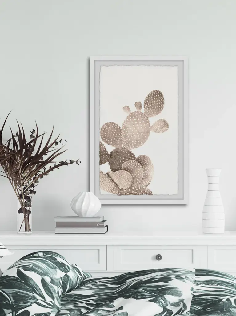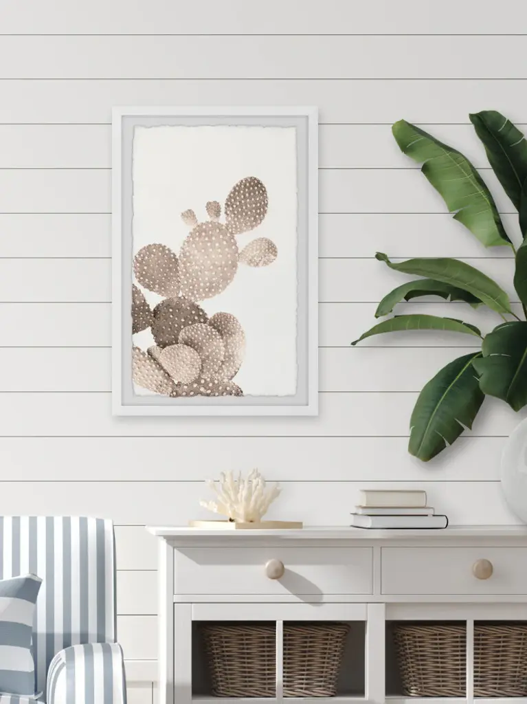 This photographic print features plant life in a new, unique light, featuring a cactus in a muted, beige color scheme. Proudly printed in the USA, this piece is printed on high quality archive paper and professionally hand-framed. With wall-mounting hooks included, this artful accent is ready to hang up as soon as it reaches your front door.- Top quality Giclee print on high resolution Archive Paper- Hand cut deckled edges- High quality durable non-warping frame- Finished under shatter resistant plexiglass- Arrives ready to hang- Includes a certificate of authenticity- Printed in the USA