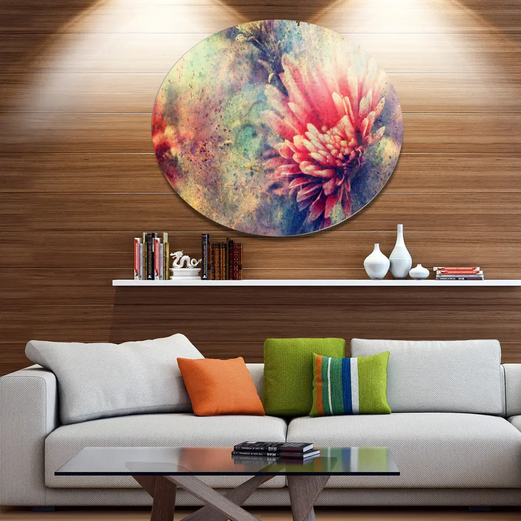 Grunge Art With Flower And Splashes, Flower Round Wall Art, 11"