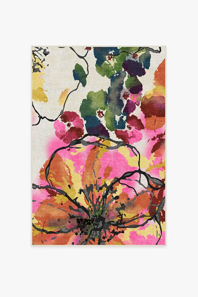 Grunge Art With Flower And Splashes, Flower Round Wall Art, 23"