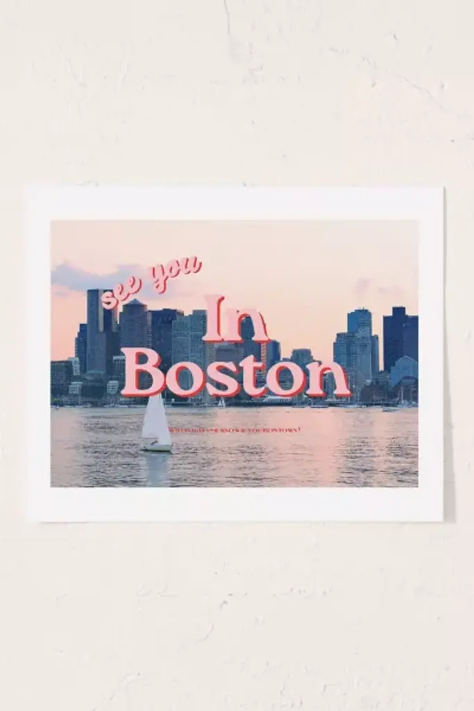Art print by GS Print Shoppe featuring See You in Boston text. Printed on archival paper made from cotton pressed in Italian mills, this high-quality art print is available in sizes and frames just right for your space. First select your frame (or go frameless), then select your size. **About the Frames** \- The exact width of each frame may vary slightly \- All frames are manufactured in the US \- Matte frames are durable poly \- Wood frames are recycled wood \- All are fitted with protective plexiglass \- Finished with wood moldings, archival backer and protective bumpers **Size** \- Available in multiple sizes \- Use the Size Guides to find the size that fits your space **Content + Care** \- Wipe clean \- Made in the USA