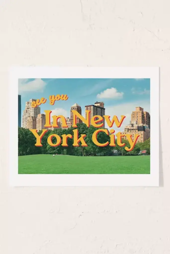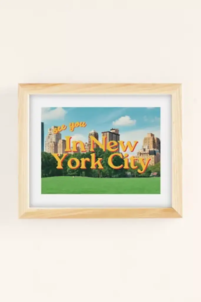 Art print from GS Print Shoppe featuring See You In New York text. Printed on archival paper made from cotton pressed in Italian mills, this high-quality art print is available in sizes and frames just right for your space. First select your frame (or go frameless), then select your size. **About the Frames** \- The exact width of each frame may vary slightly \- All frames are manufactured in the US \- Matte frames are durable poly \- Wood frames are recycled wood \- All are fitted with protective plexiglass \- Finished with wood moldings, archival backer and protective bumpers **Size** \- Available in multiple sizes \- Use the Size Guides to find the size that fits your space **Content + Care** \- Wipe clean \- Made in the USA