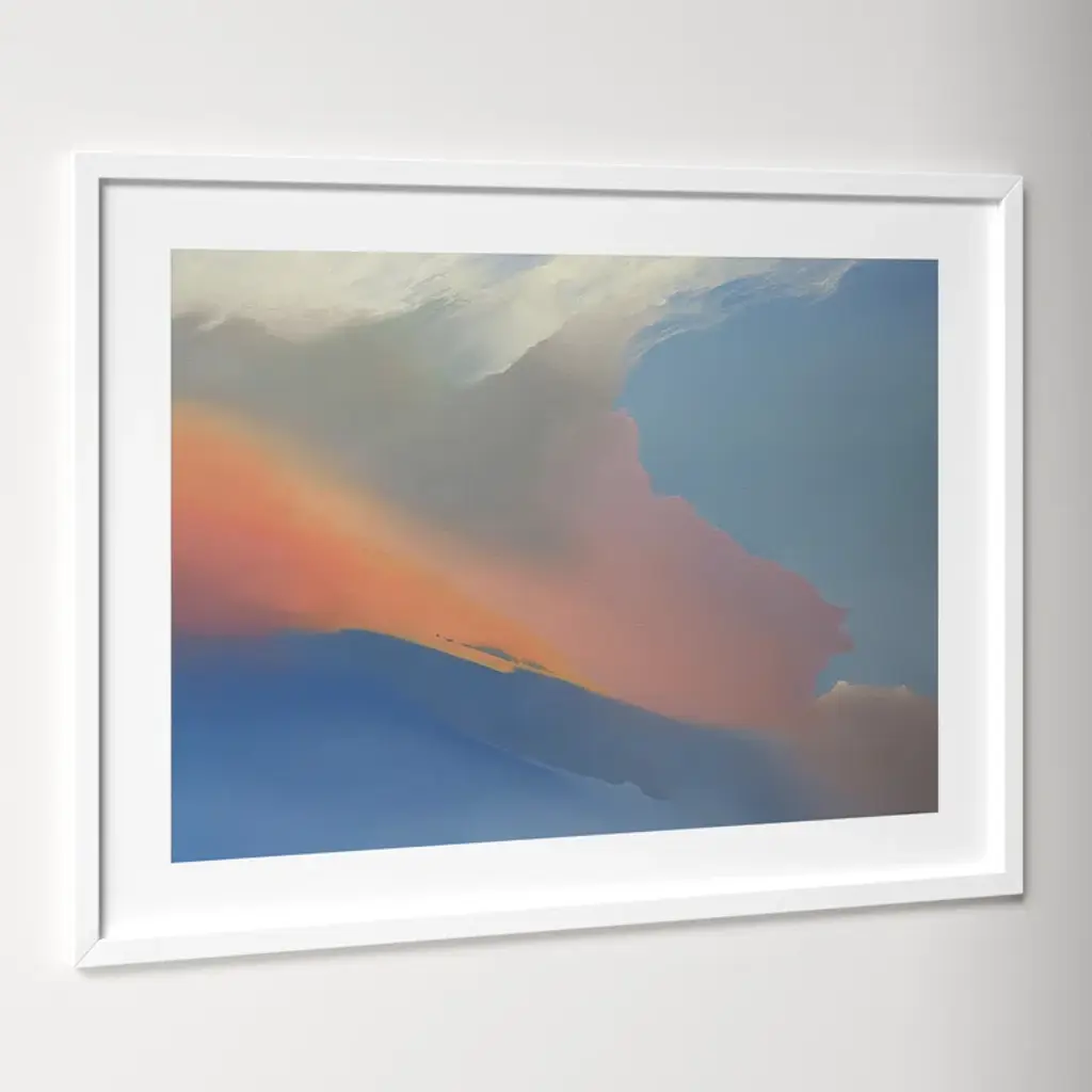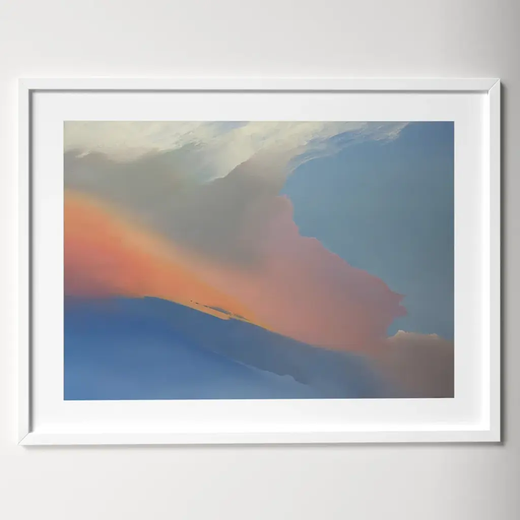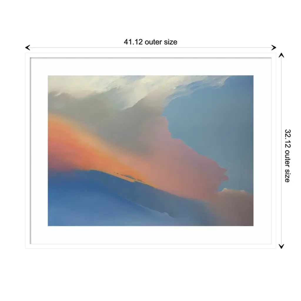 This abstract graphic art print captures the vibes of a sunset sky for a cool-hued composition ready to layer onto your walls. Printed in the USA, this graphic art piece features a streaks of blue, red, and orange woven together for a look that matches clouds at sundown. It's giclee-printed on archival paper using fade resistant inks for an accurate, lasting reproduction of the original work. This piece is framed, matted, and includes wall mounting hardware, so it arrives ready to hang.