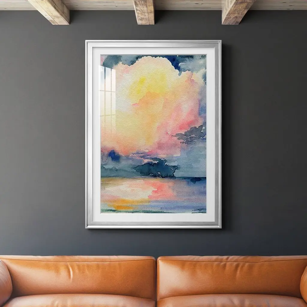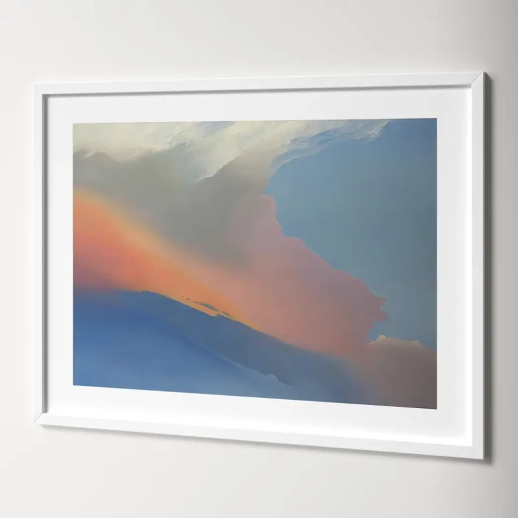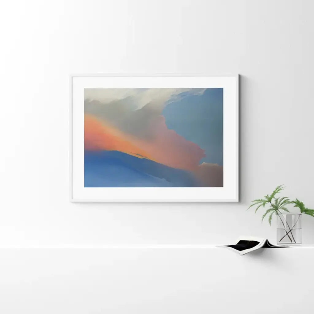 This abstract graphic art print captures the vibes of a sunset sky for a cool-hued composition ready to layer onto your walls. Printed in the USA, this graphic art piece features a streaks of blue, red, and orange woven together for a look that matches clouds at sundown. It's giclee-printed on archival paper using fade resistant inks for an accurate, lasting reproduction of the original work. This piece is framed, matted, and includes wall mounting hardware, so it arrives ready to hang.