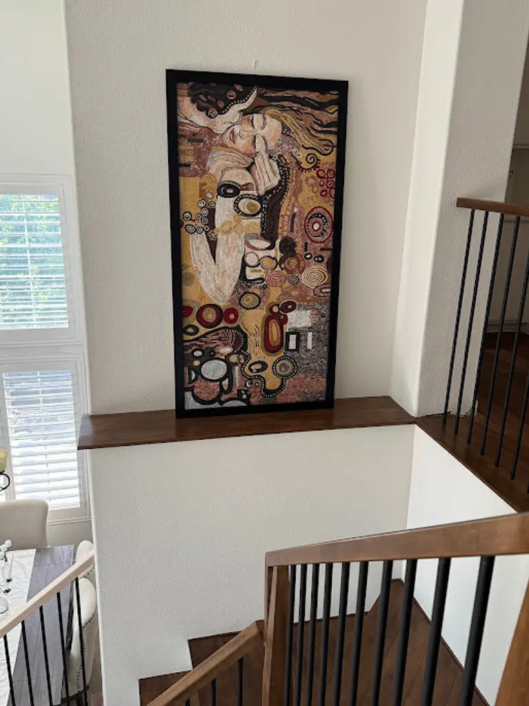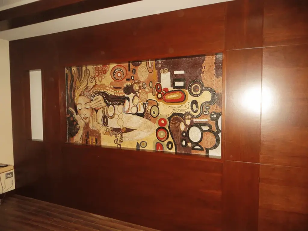 Experience the exquisite beauty of Gustav Klimt's "The Kiss" in a stunning mosaic reproduction that brings this iconic masterpiece to life. Renowned for his celebration of the female form and a unique approach to color and texture, Klimt's original work has captivated audiences for over a century. Now, you can own a piece of this artistic legacy with our meticulously handcrafted mosaic interpretation. At Mozaico, we understand the importance of preserving the essence of Klimt's work, which is why our talented professional artist has painstakingly recreated "The Kiss" by hand. Each of the 18,432 natural stone tiles has been carefully selected and skillfully assembled, ensuring that every detail mirrors that of the beloved original. The vibrant colors and intricate patterns characteristic of Klimt are beautifully represented, allowing you to immerse yourself in the world of early 20th-century art. This mosaic reproduction not only serves as a stunning decorative piece for your home but also as a conversation starter and a testament to the timeless allure of Klimt’s artistry. Perfect for art enthusiasts, collectors, or anyone looking to enhance their living space with a touch of elegance, "Gustav Klimt Kiss" is an exceptional addition to any room. The radiant Brown Quartz tiles introduce a warm, earthy tone with translucent brilliance that adds depth and richness, while the dark red quartz elements shimmer with jewel-like intensity, evoking passion and intimacy. Complementing these, the aqua blue quartz stones lend a scintillating, prismatic oceanic brilliance that enhances the mosaic’s cool, silky texture with exotic tropical blue luxury. Transform your walls with the allure of this masterpiece and let the enchanting imagery of love and intimacy inspire you daily. Ideal for display in your living room, bedroom, or office, this mosaic art piece makes for a perfect gift for art lovers and those who appreciate the finer things in life. Embrace the art of Gustav Klimt with our "Kiss" mosaic reproduction, and let the beauty of this timeless work elevate your surroundings. Celebrate love, beauty, and artistry, all captured in this remarkable piece crafted from premium quality natural stone and exotic materials that will be cherished for generations to come.