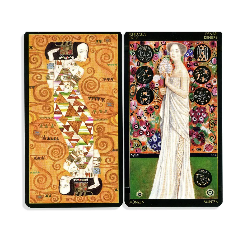 More than an art deck recreating some of Gustav Klimt's styles and techniques, these Gustav Klimt Tarot Cards are embellished with beautiful gold stamping, evoking some of Klimt's most famous artworks. It is close enough to the Rider-Waite-Smith for ease in divination and the depth of Klimt's symbolic art will also help you in meditation. This is a deck you will be drawn to again and again. Includes instructions booklet. The Gustav Klimt Tarot Cards Deck measures 5h x 2"w.