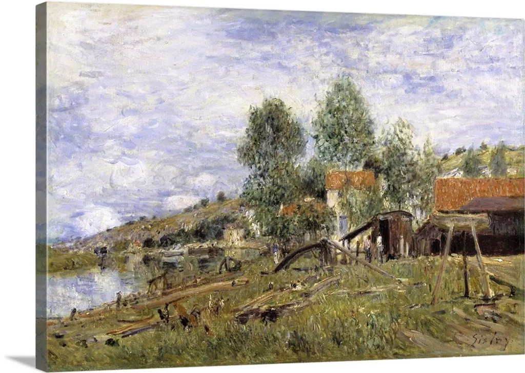 21" x 28" Gustave Loiseau Waterfall at St. Martin Pontoise gallery wrapped premium canvas print reproduced to meet museum quality standards. Our Museum quality canvas prints are produced using high-precision print technology for a more accurate reproduction printed on high quality canvas with fade-resistant, archival inks. Our progressive business model allows us to offer works of art to you at the best wholesale pricing, significantly less than art gallery prices, affordable to all. This artwork is gallery wrapped by one of our expert framers, wrapped with 1.5" deep heavy duty wooden stretcher bars, to hang frameless for a high-end designer look. The printed image is wrapped around the edges and visible on all four sides. Our gallery wrapped canvas print comes with hardware, ready to hang on your wall. We present a comprehensive collection of exceptional canvas art reproductions by Gustave Loiseau.