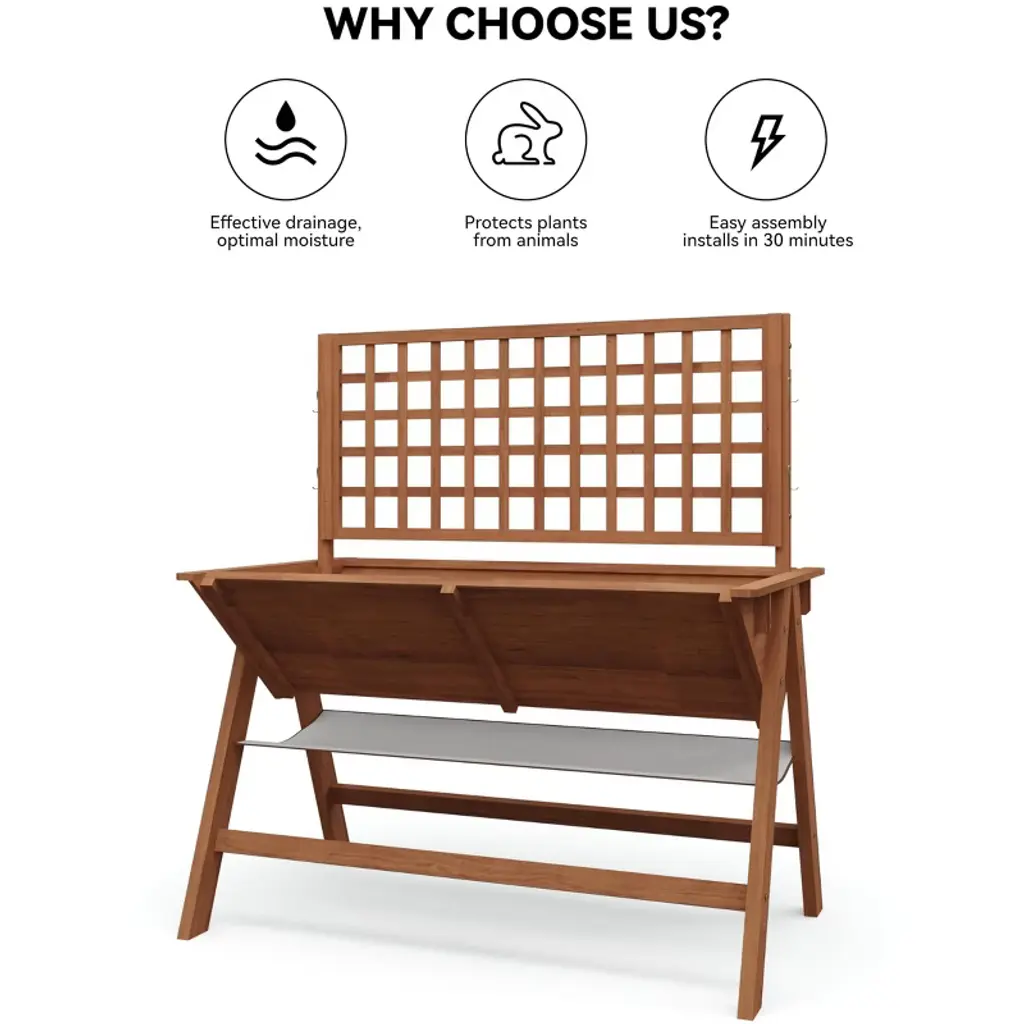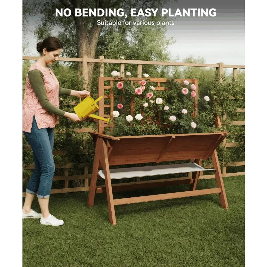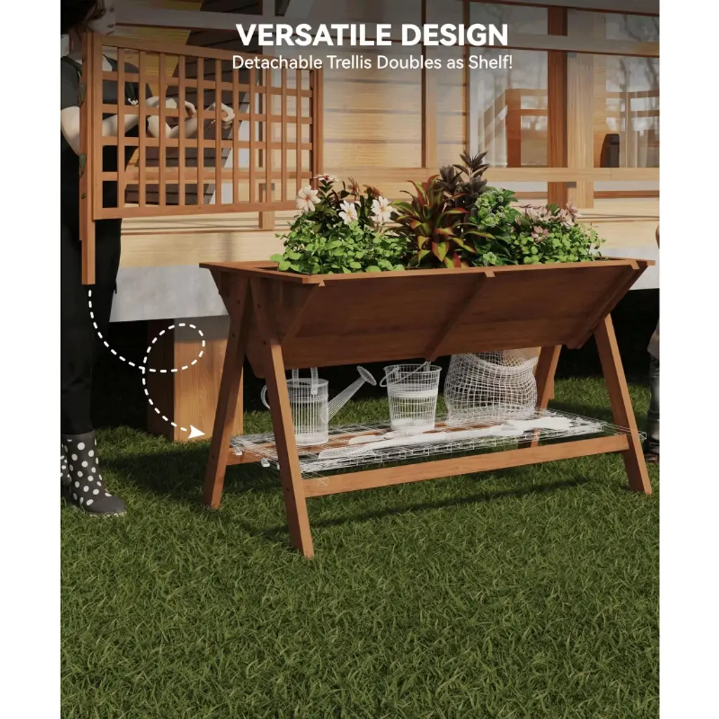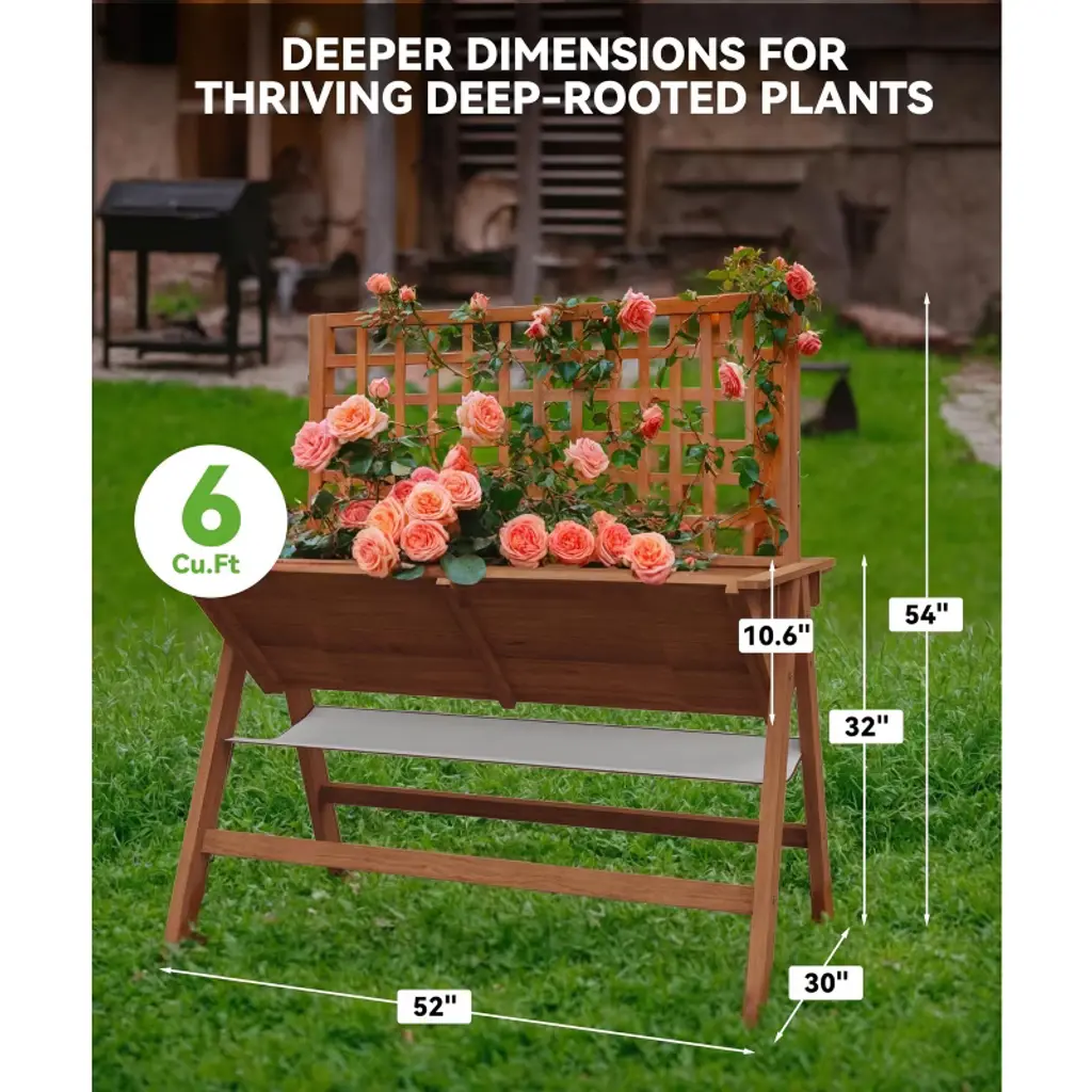 Gustowave 52'' Wooden Raised Garden Bed With Legs, Mobile Outdoor Planter Box With Storage Shelf, Elevated Large Planter Box, Acorn Brown