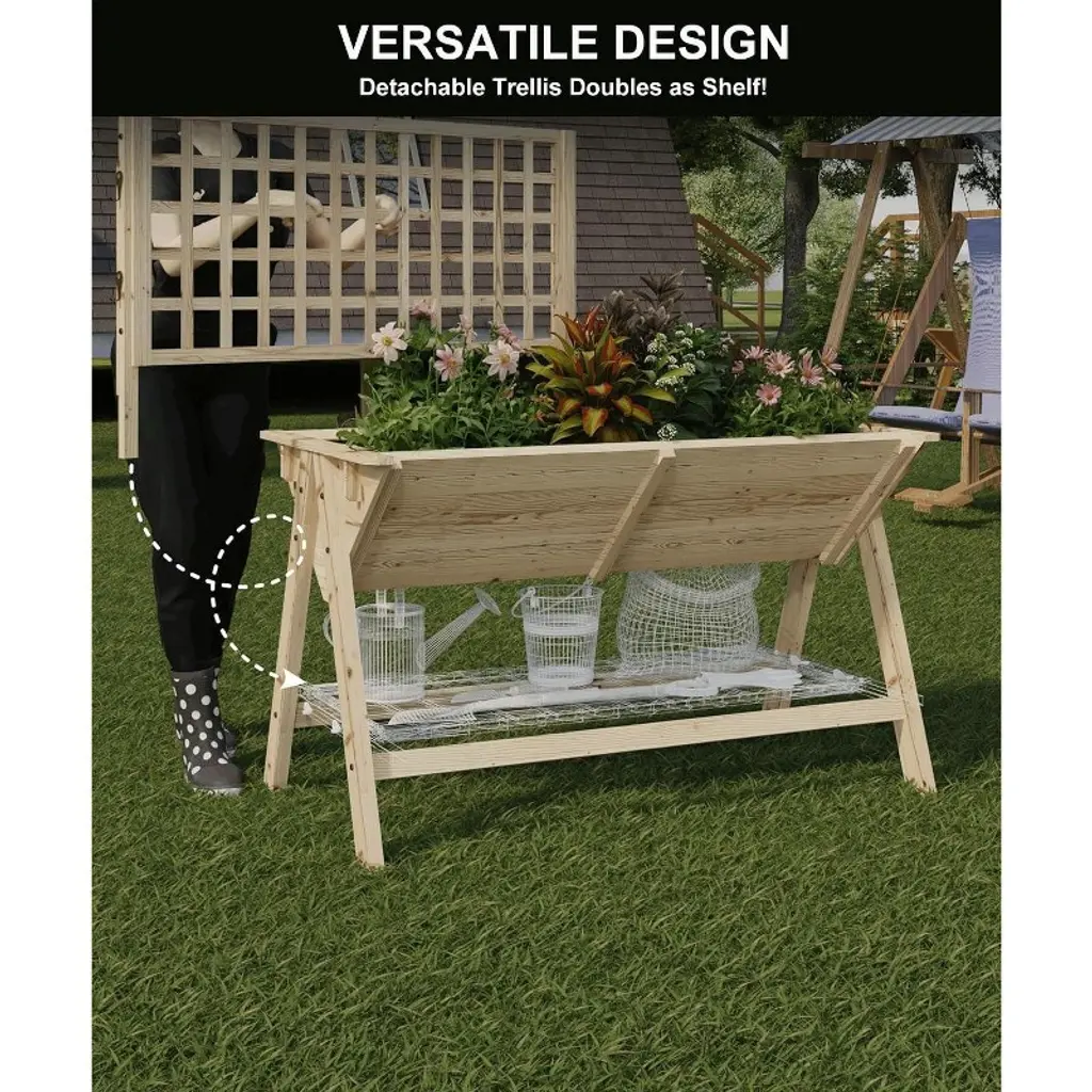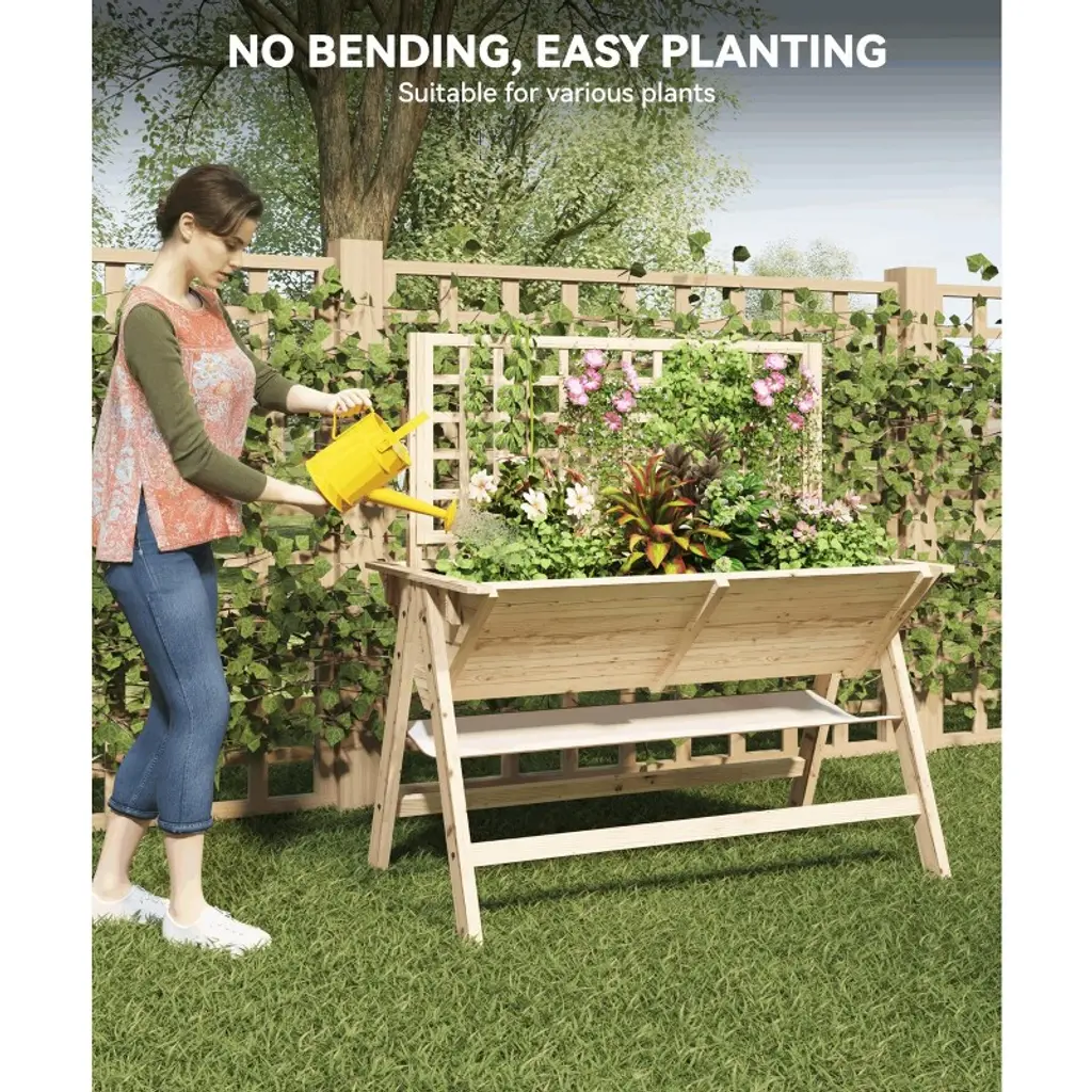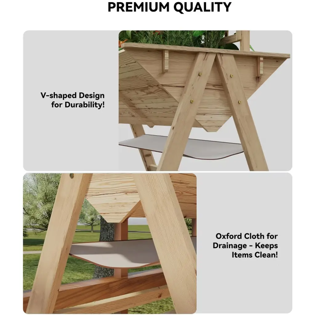 Gustowave 52'' Wooden Raised Garden Bed With Legs, Mobile Outdoor Planter Box With Storage Shelf, Elevated Large Planter Box, Natural