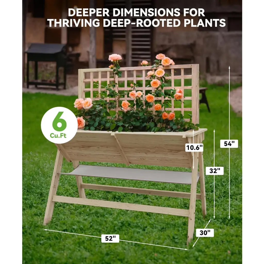 This spacious 52" cedar raised garden bed offers a 10.6-inch planting depth for deep-rooted plants, supporting up to 180 lbs with ergonomic height to reduce back strain. Crafted from premium tapered cedar boards, it resists warping and collapse for long-lasting outdoor use. Perfect for growing vegetables, herbs, or flowers, it transforms patios into garden ovens. Smooth surfaces invite DIY painting/staining for personalization. Assembles in 30 minutes with basic tools and a helper—ideal as a functional gift for gardeners seeking a blend of robust design, customizable aesthetics, and effortless setup for thriving green spaces.